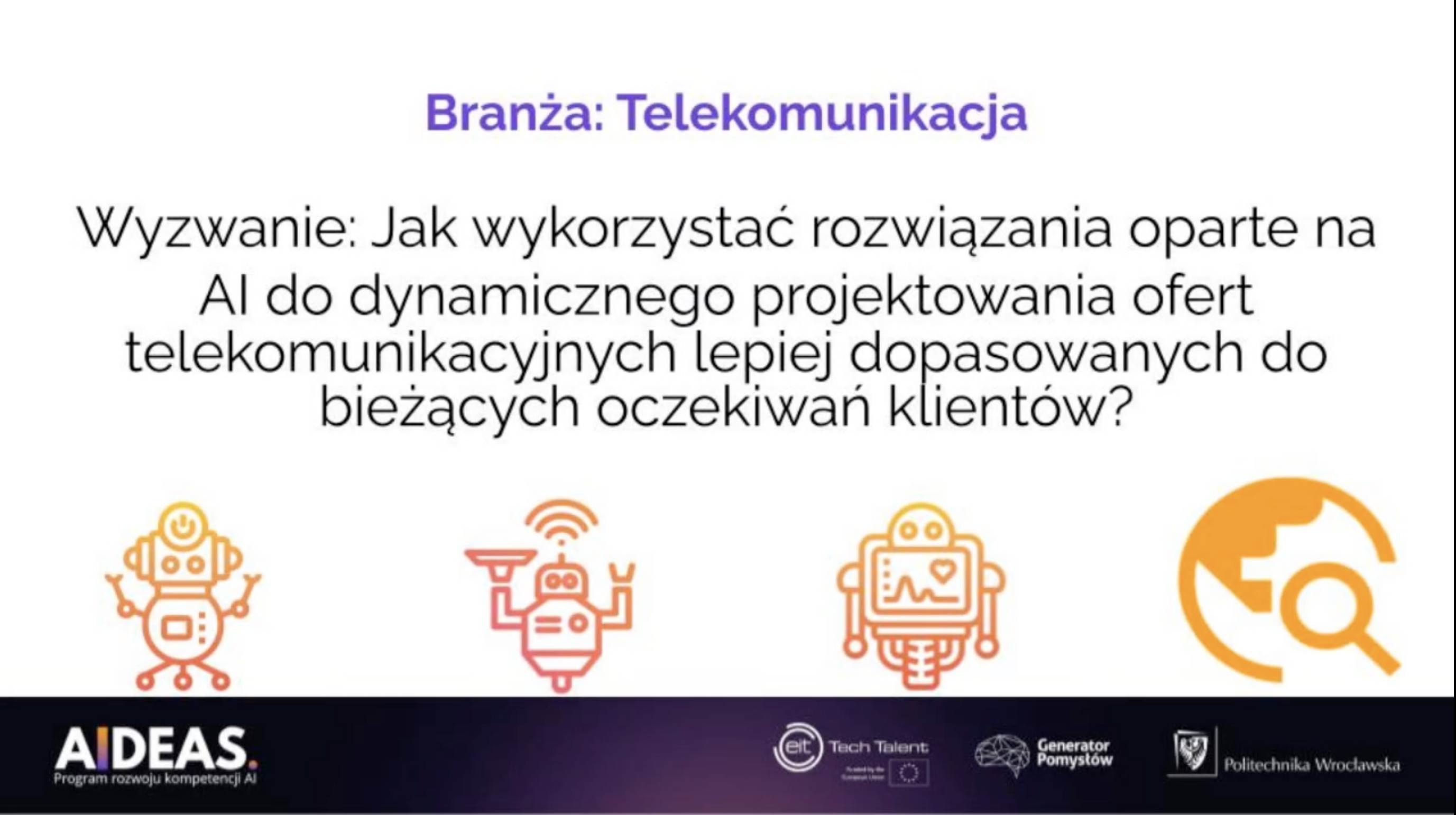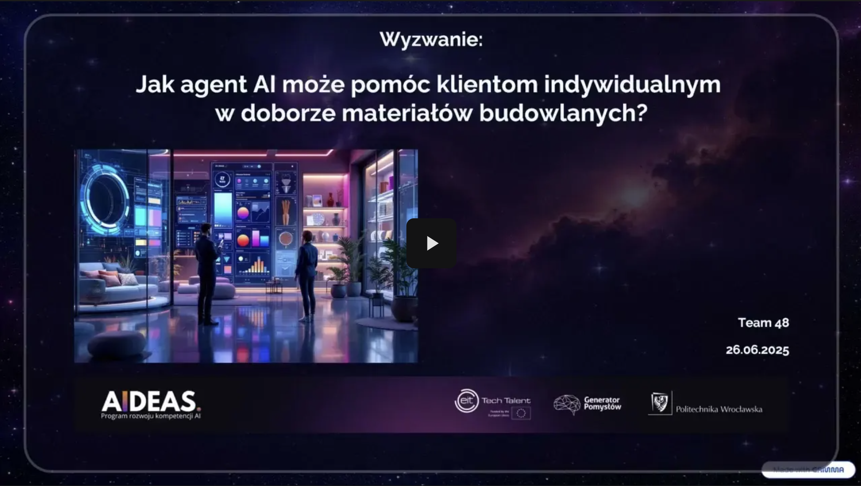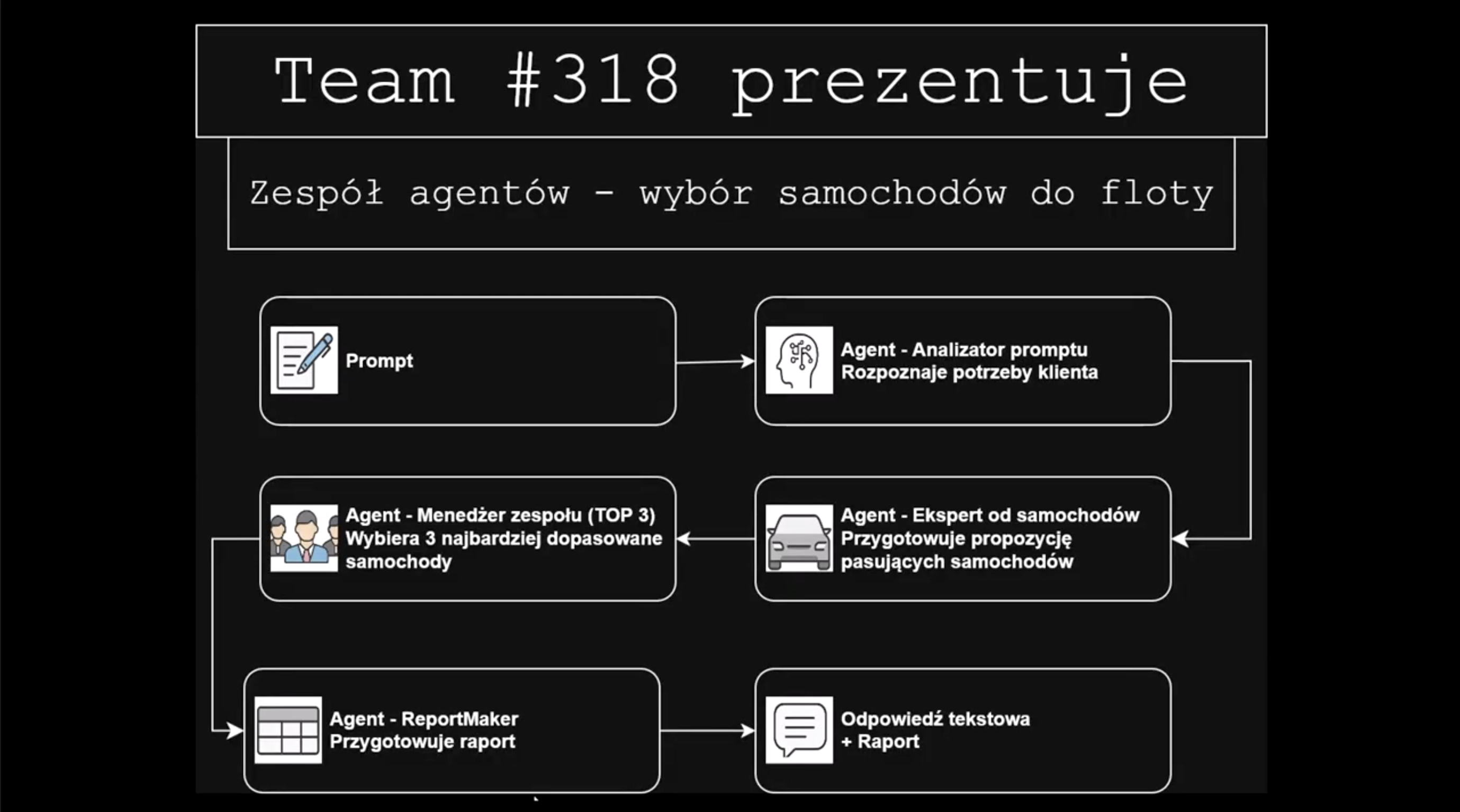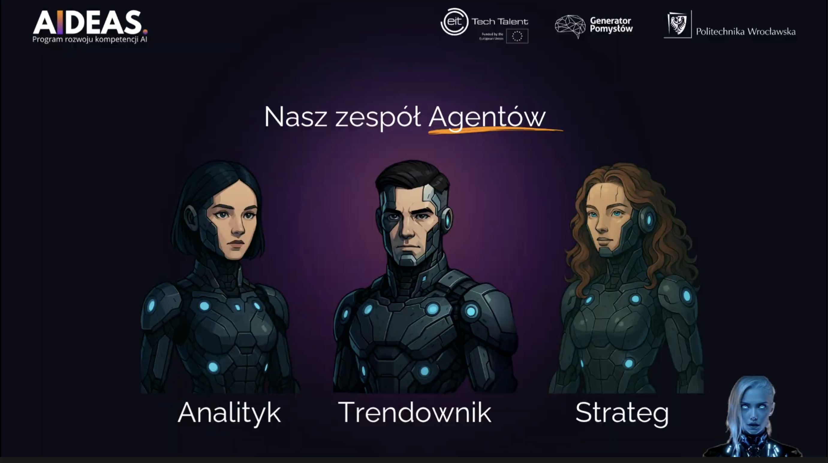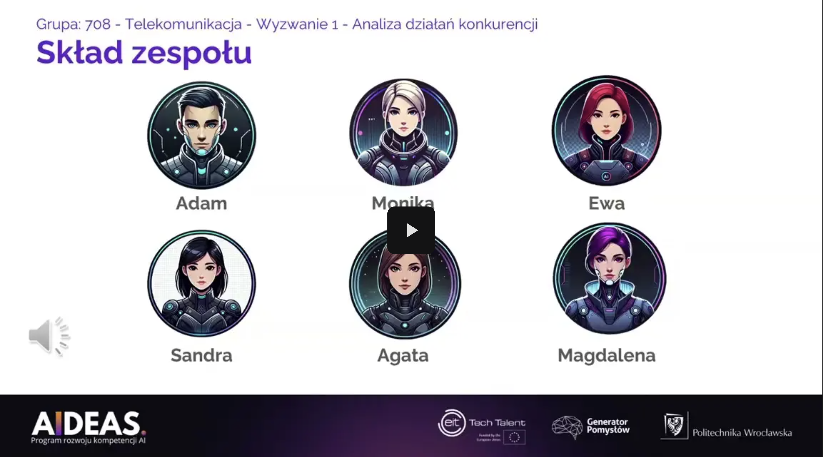 Każdy zespół to inna historia, inne wyzwania i inny pomysł na wykorzystanie AI w biznesie. Znajdziecie tutaj przygotowane rozwiązania zespołów projektowych pokazujące efekty ich pracy — od koncepcji, przez realizację, aż po finalne rezultaty.
