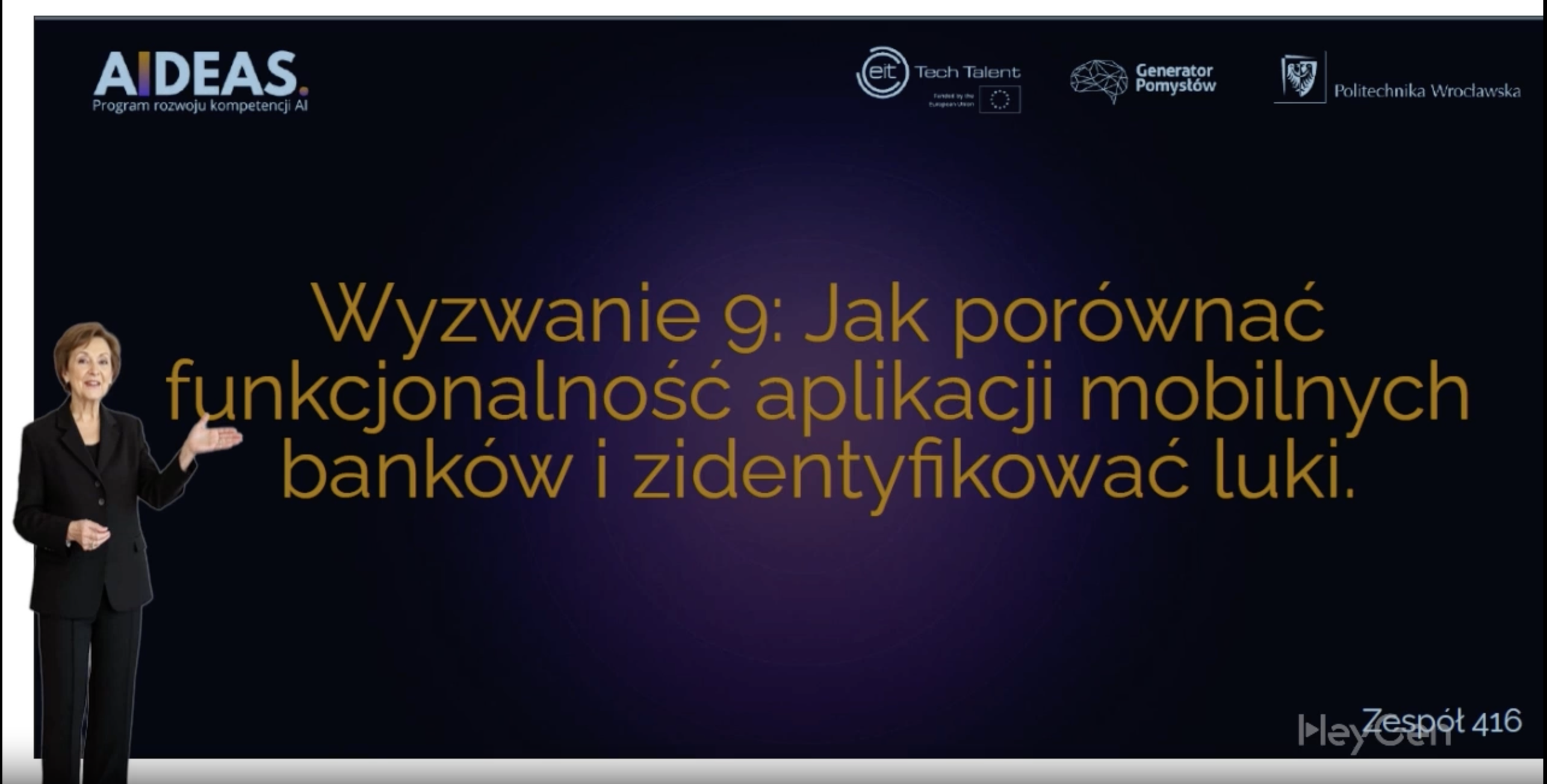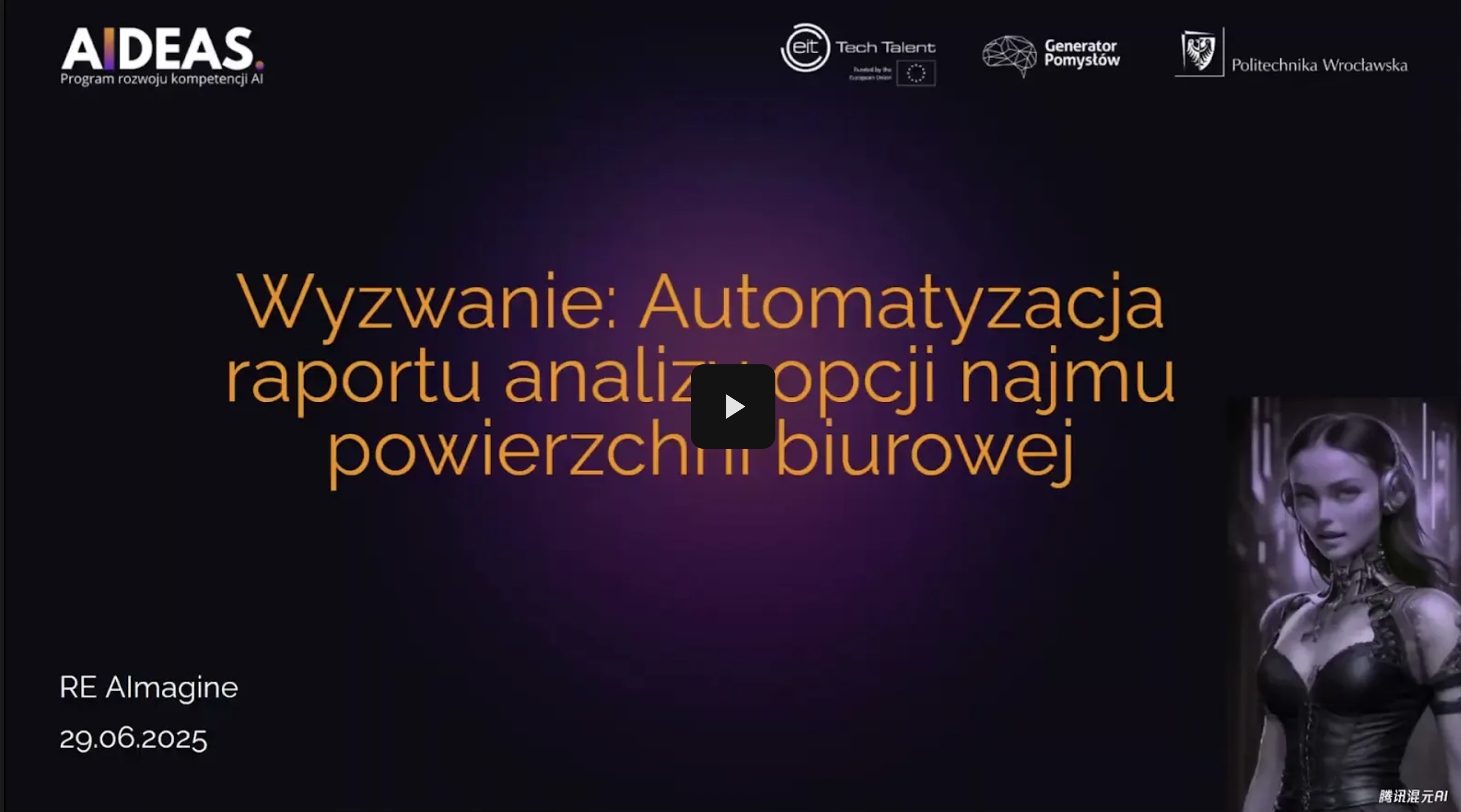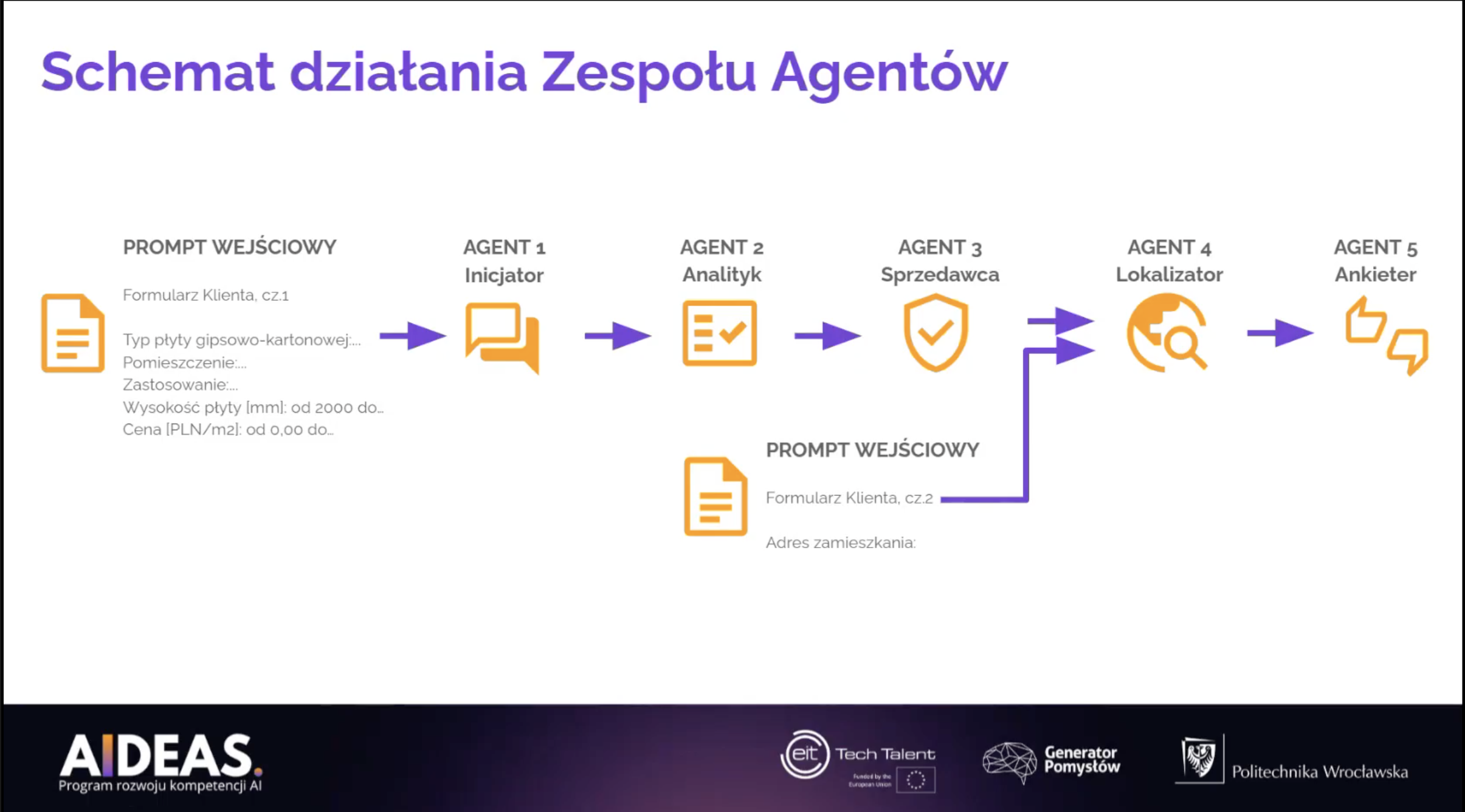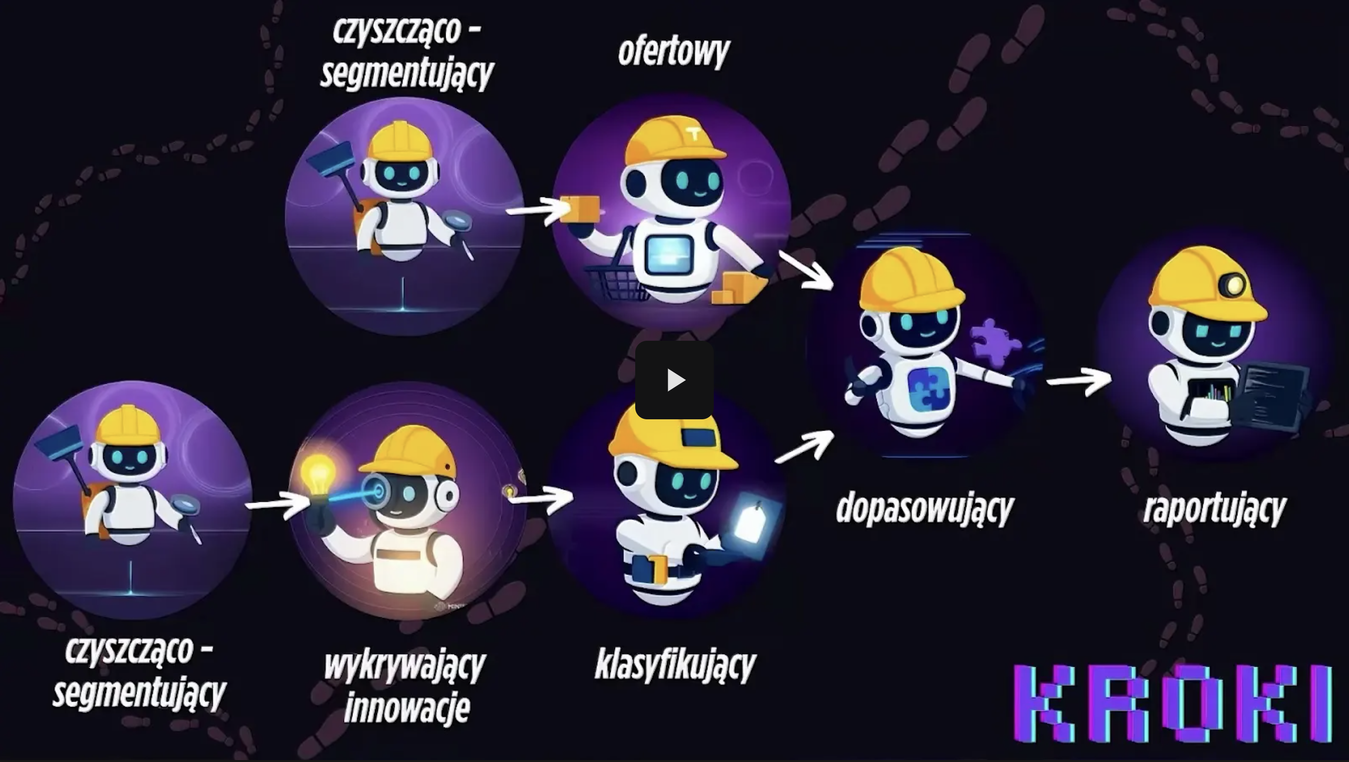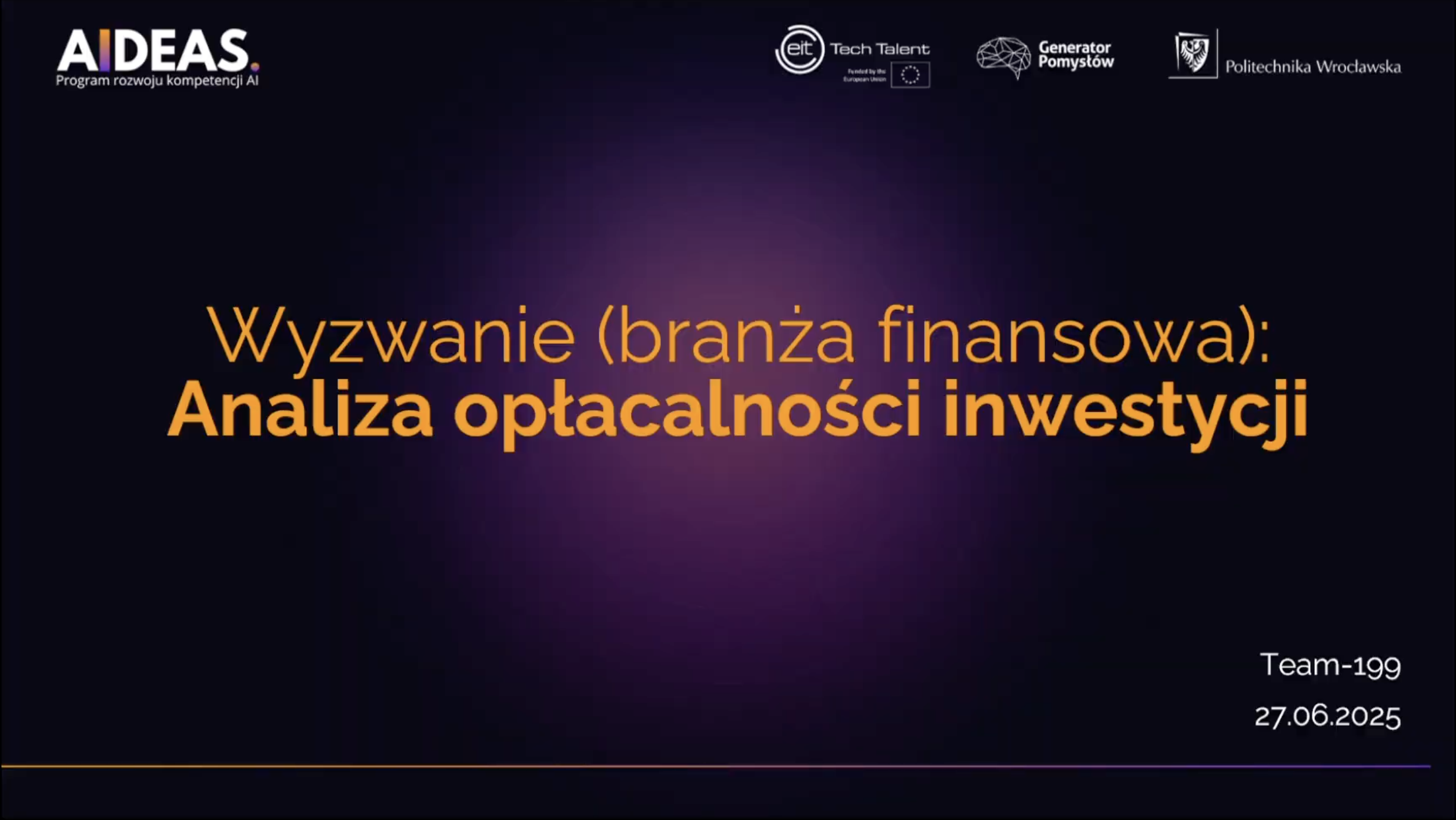Każdy zespół to inna historia, inne wyzwania i inny pomysł na wykorzystanie AI w biznesie. Znajdziecie tutaj przygotowane rozwiązania zespołów projektowych pokazujące efekty ich pracy — od koncepcji, przez realizację, aż po finalne rezultaty.