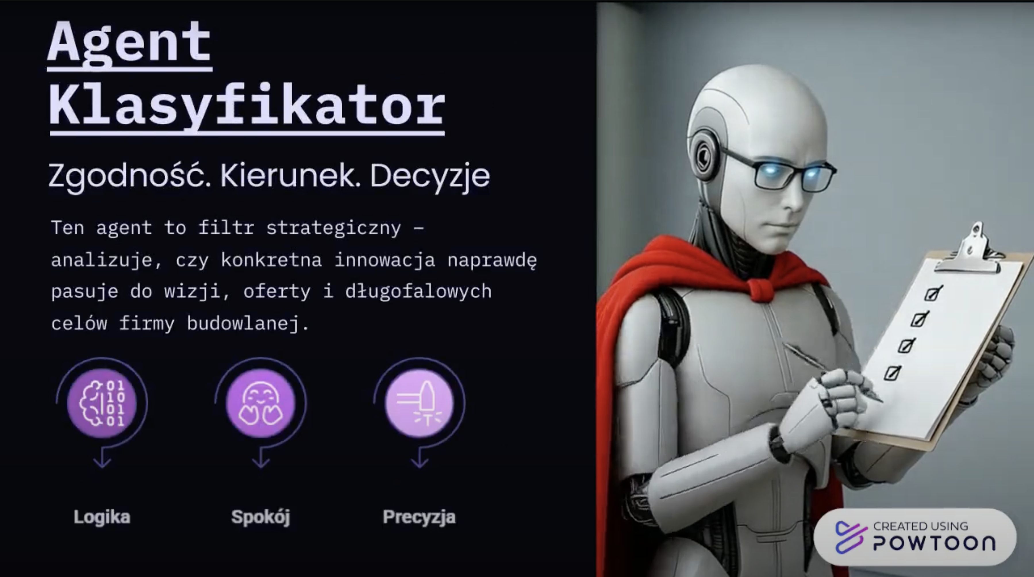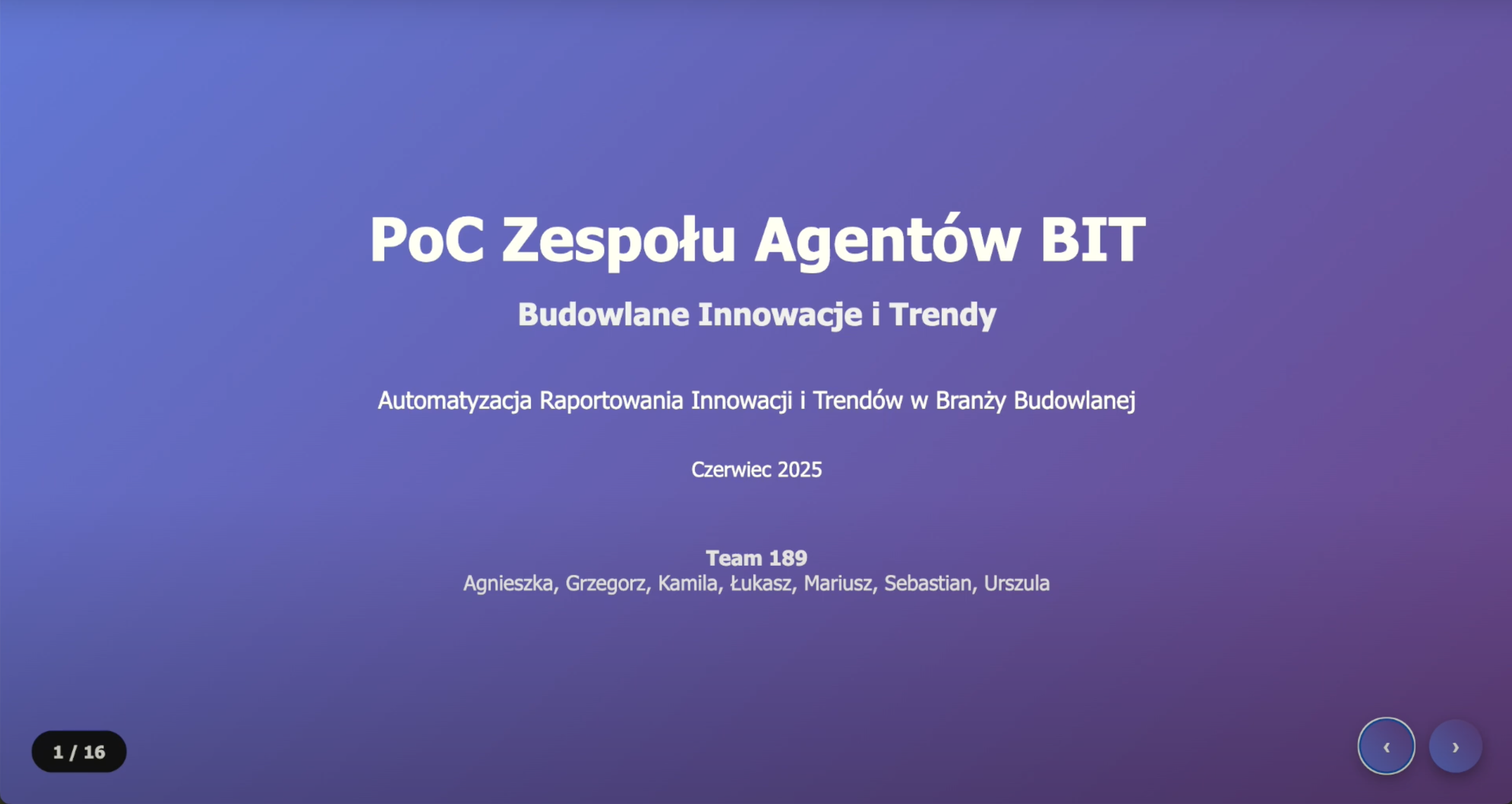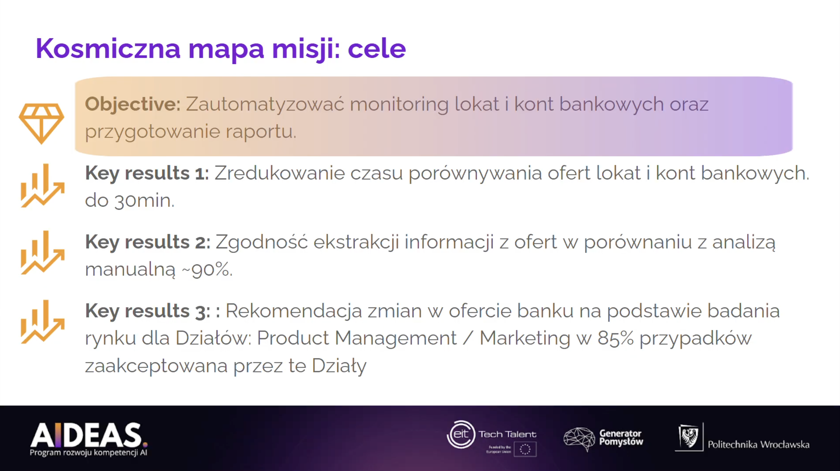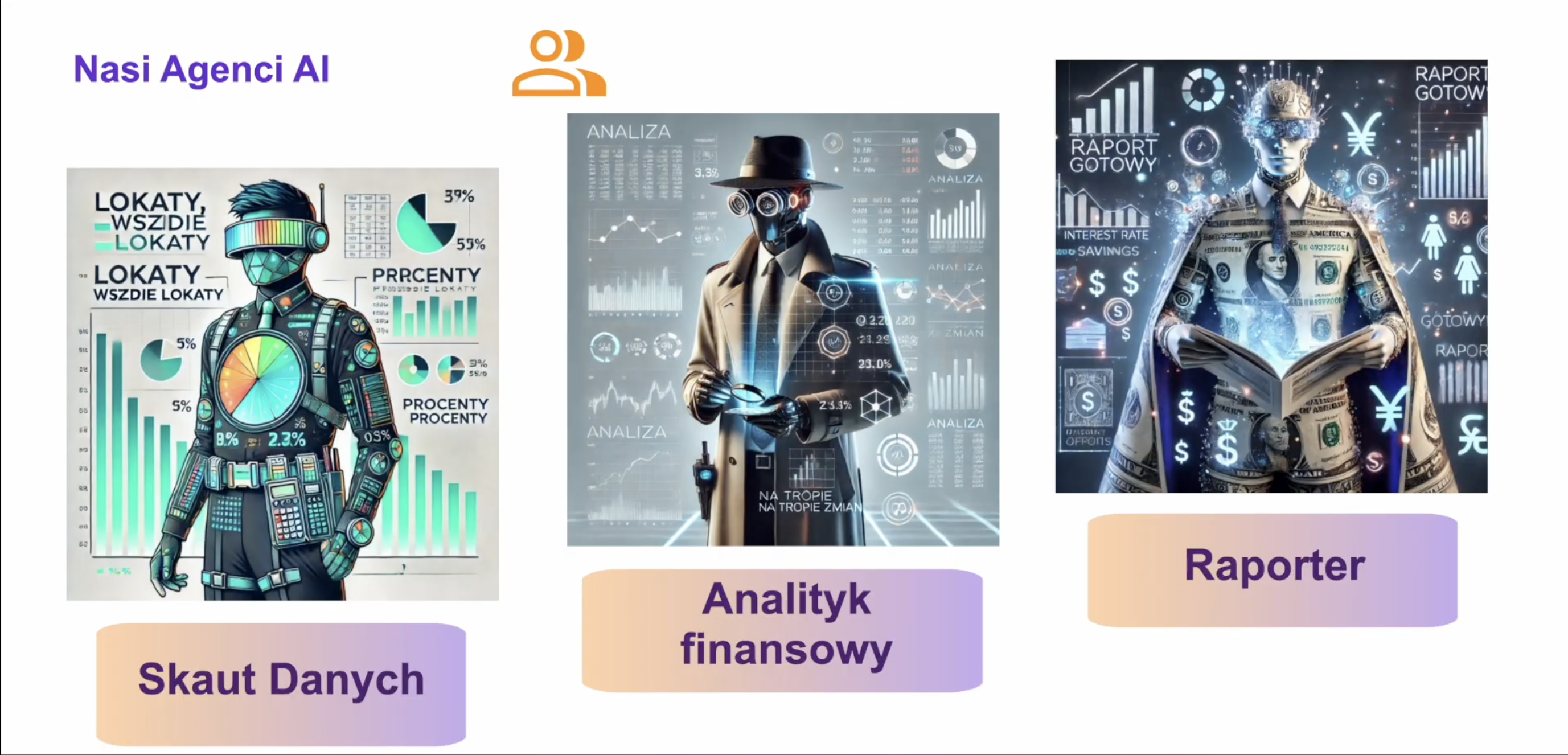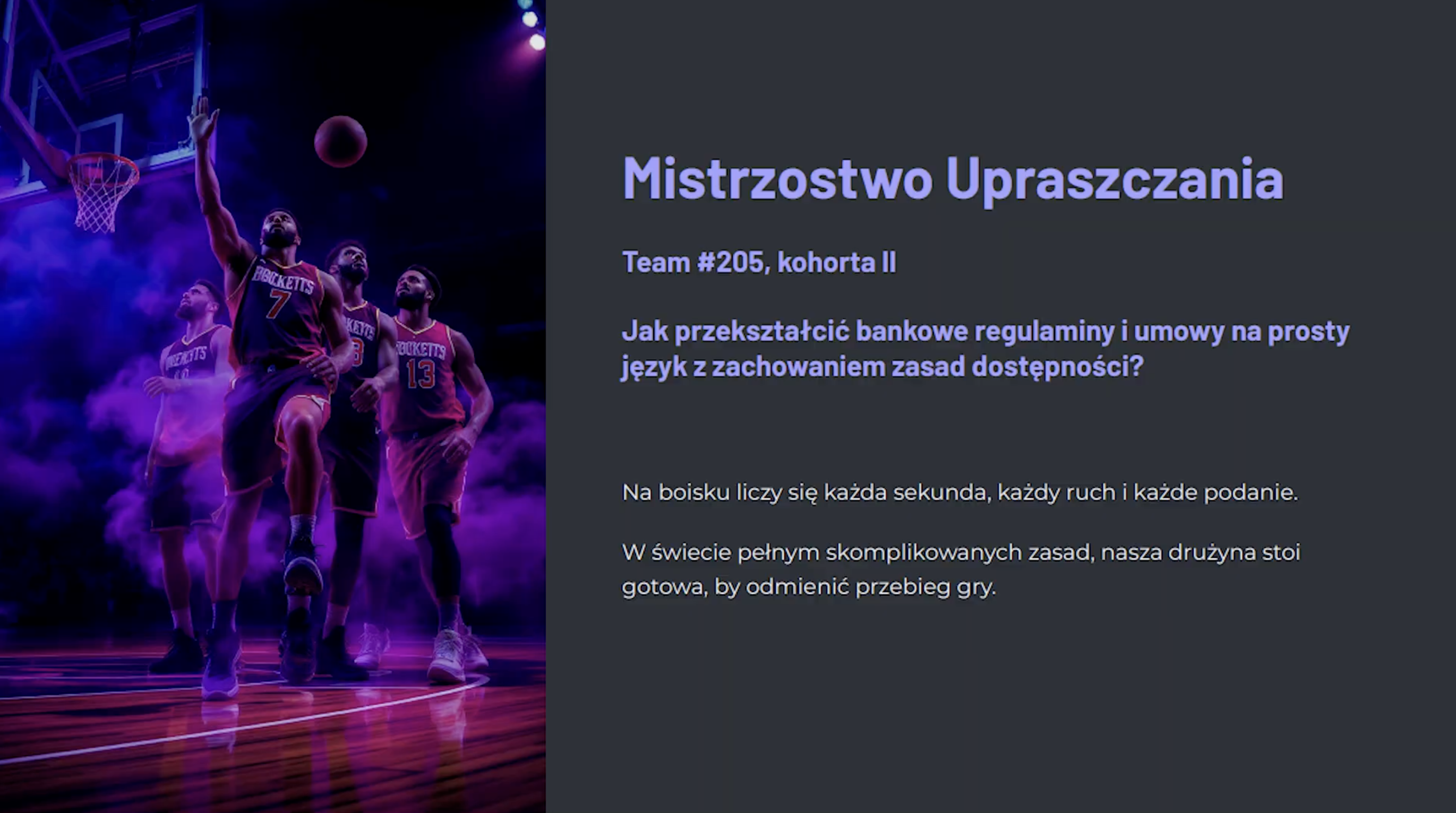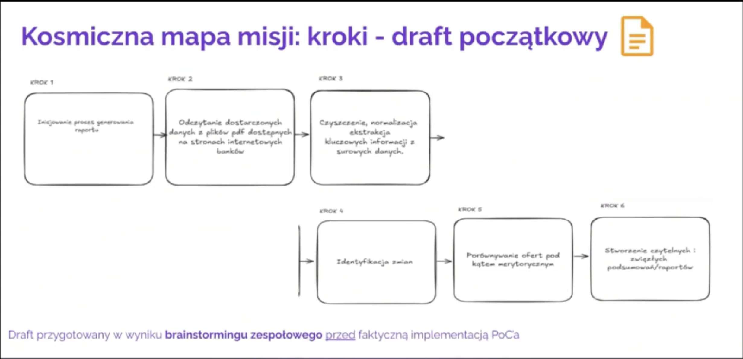 Każdy zespół to inna historia, inne wyzwania i inny pomysł na wykorzystanie AI w biznesie. Znajdziecie tutaj przygotowane rozwiązania zespołów projektowych pokazujące efekty ich pracy — od koncepcji, przez realizację, aż po finalne rezultaty.