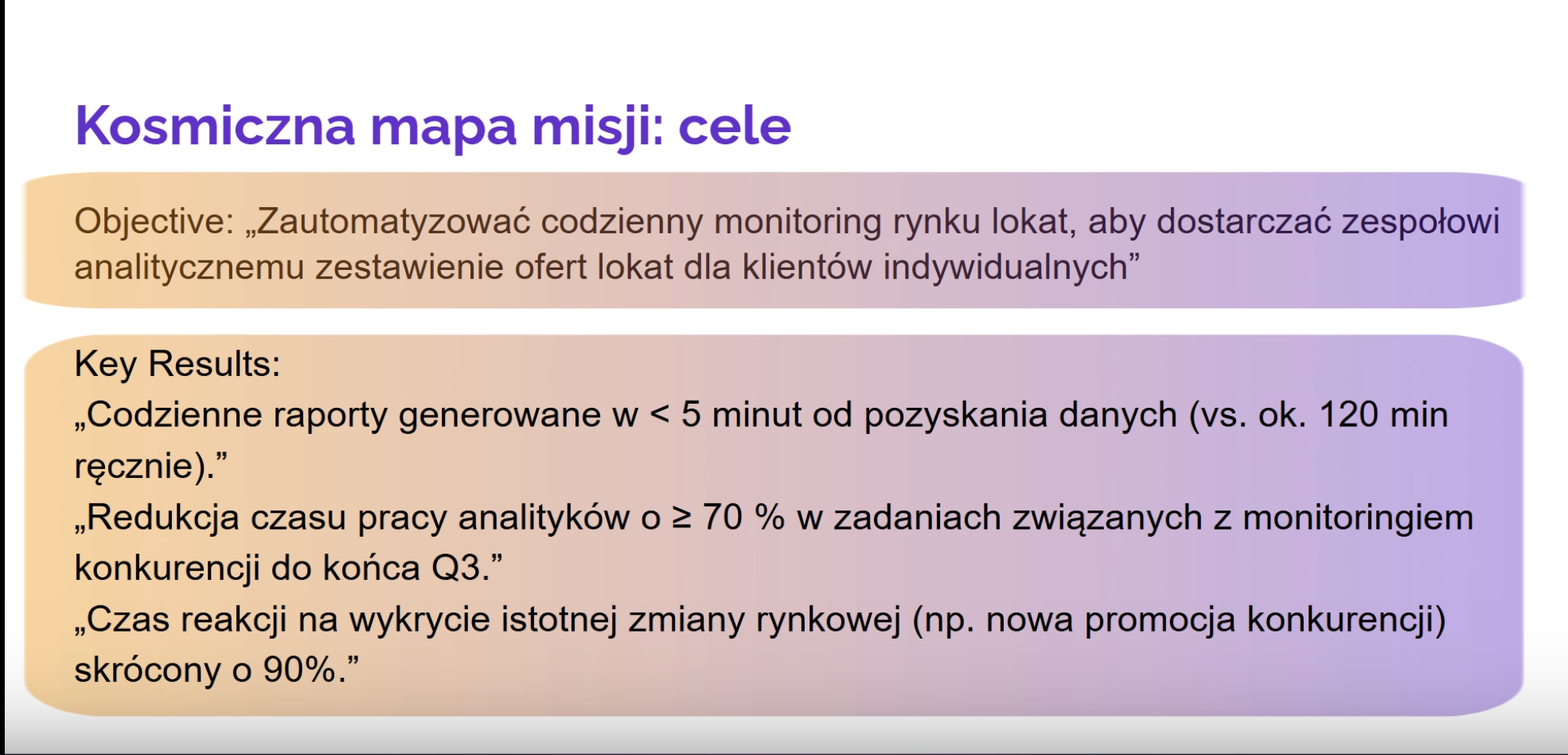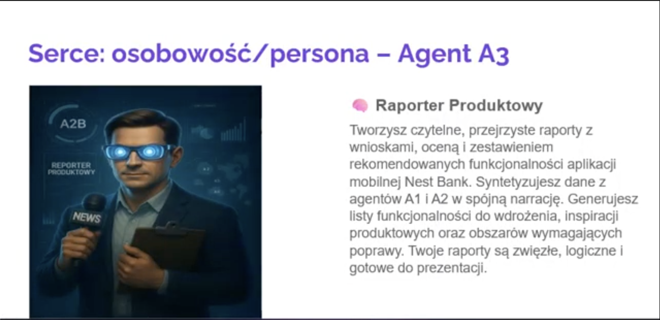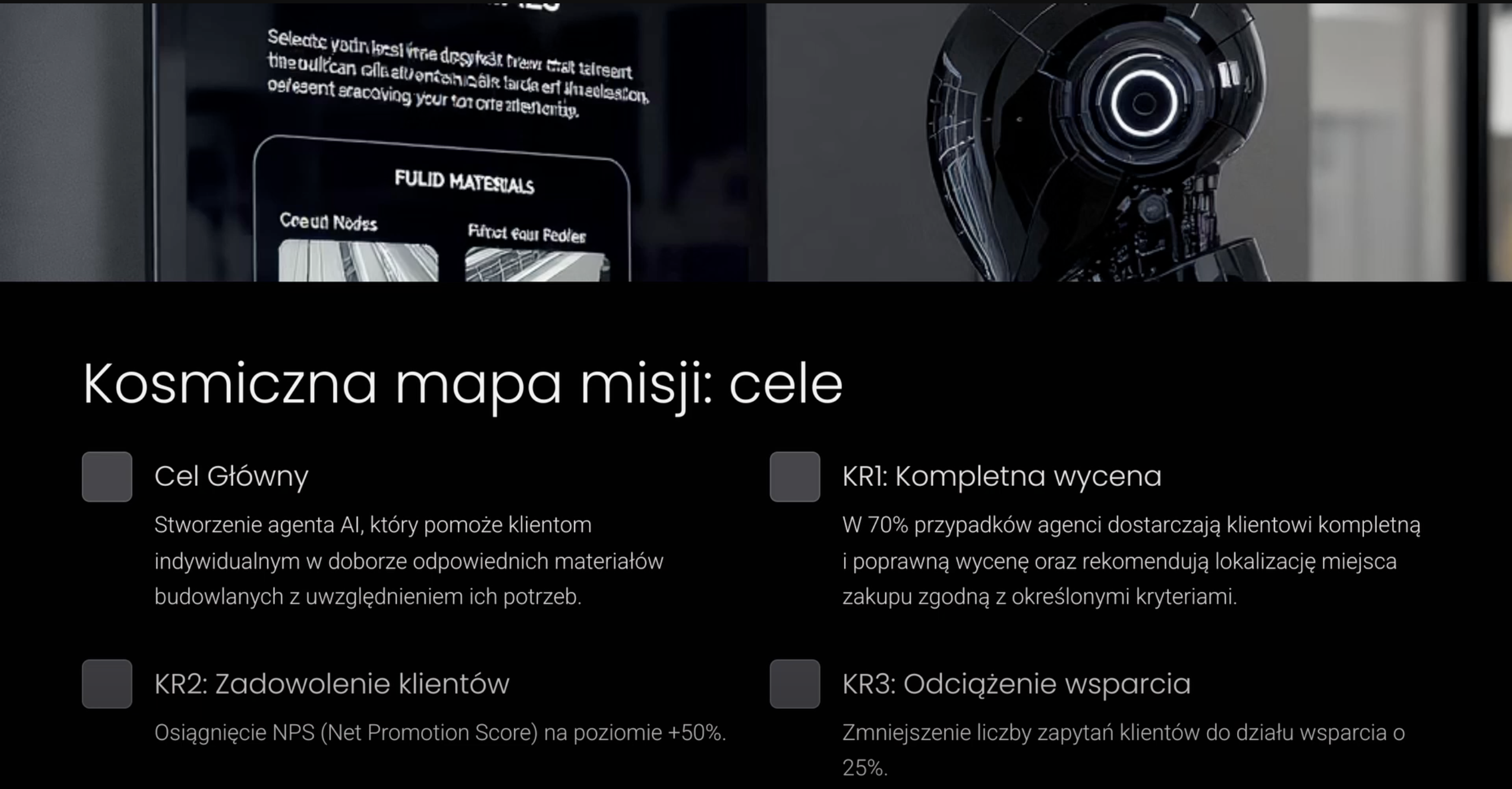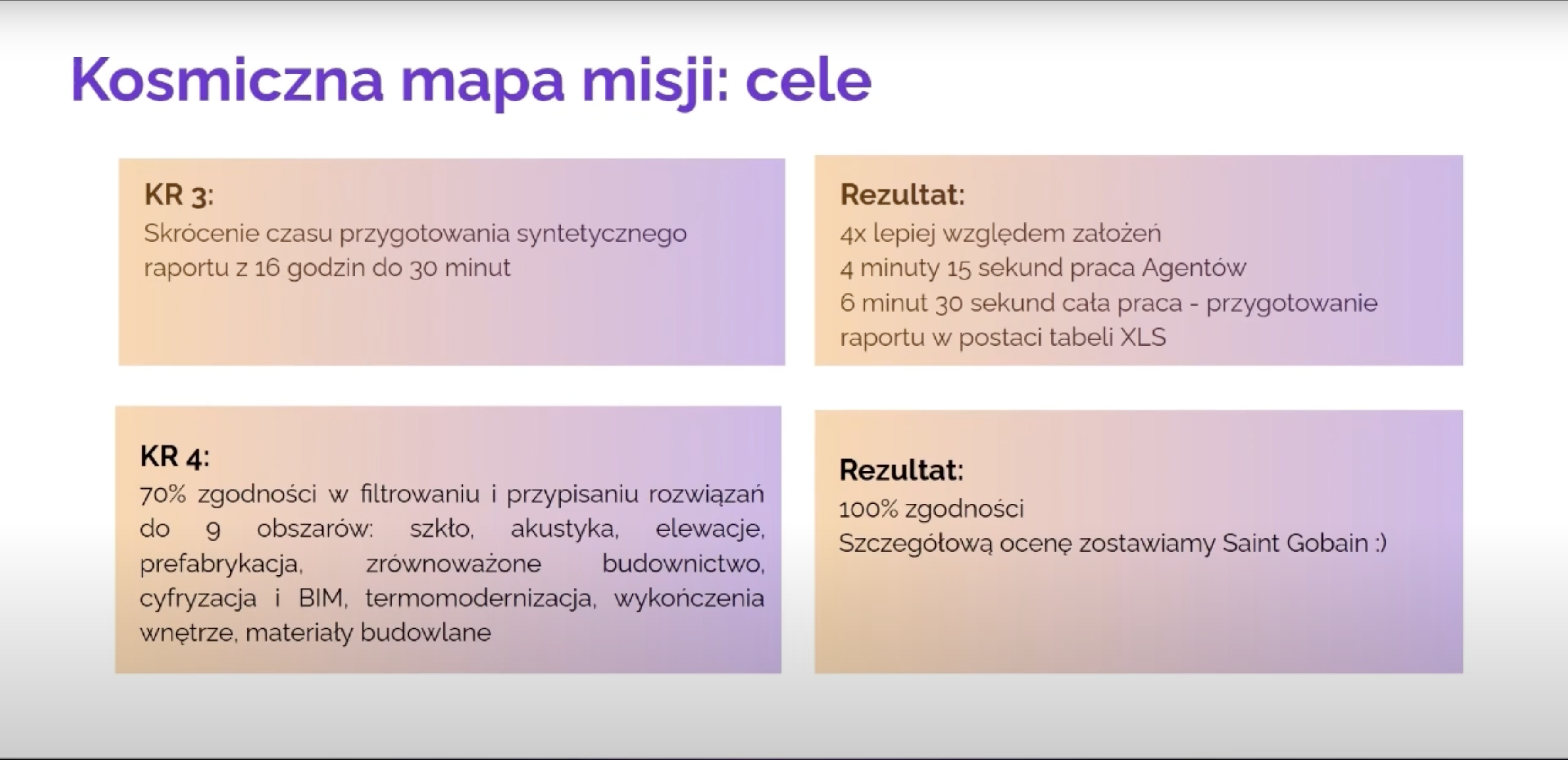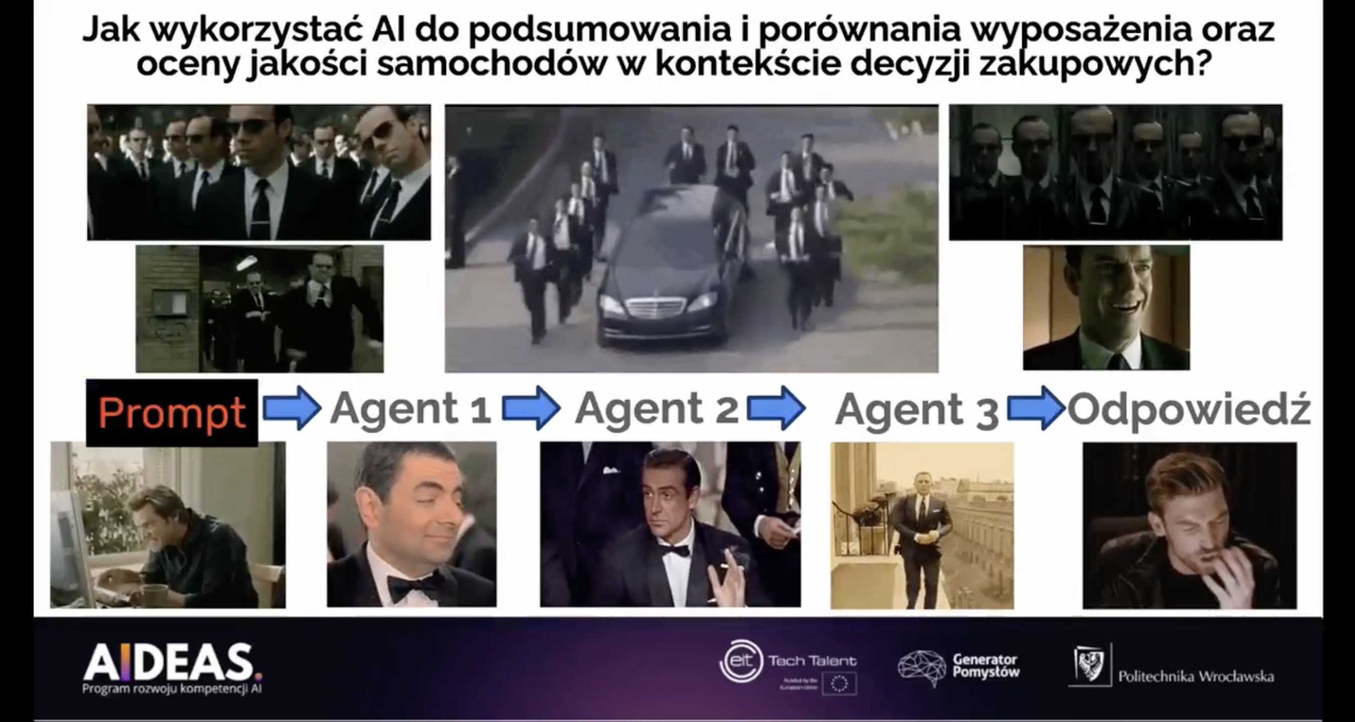 Każdy zespół to inna historia, inne wyzwania i inny pomysł na wykorzystanie AI w biznesie. Znajdziecie tutaj przygotowane rozwiązania zespołów projektowych pokazujące efekty ich pracy — od koncepcji, przez realizację, aż po finalne rezultaty.