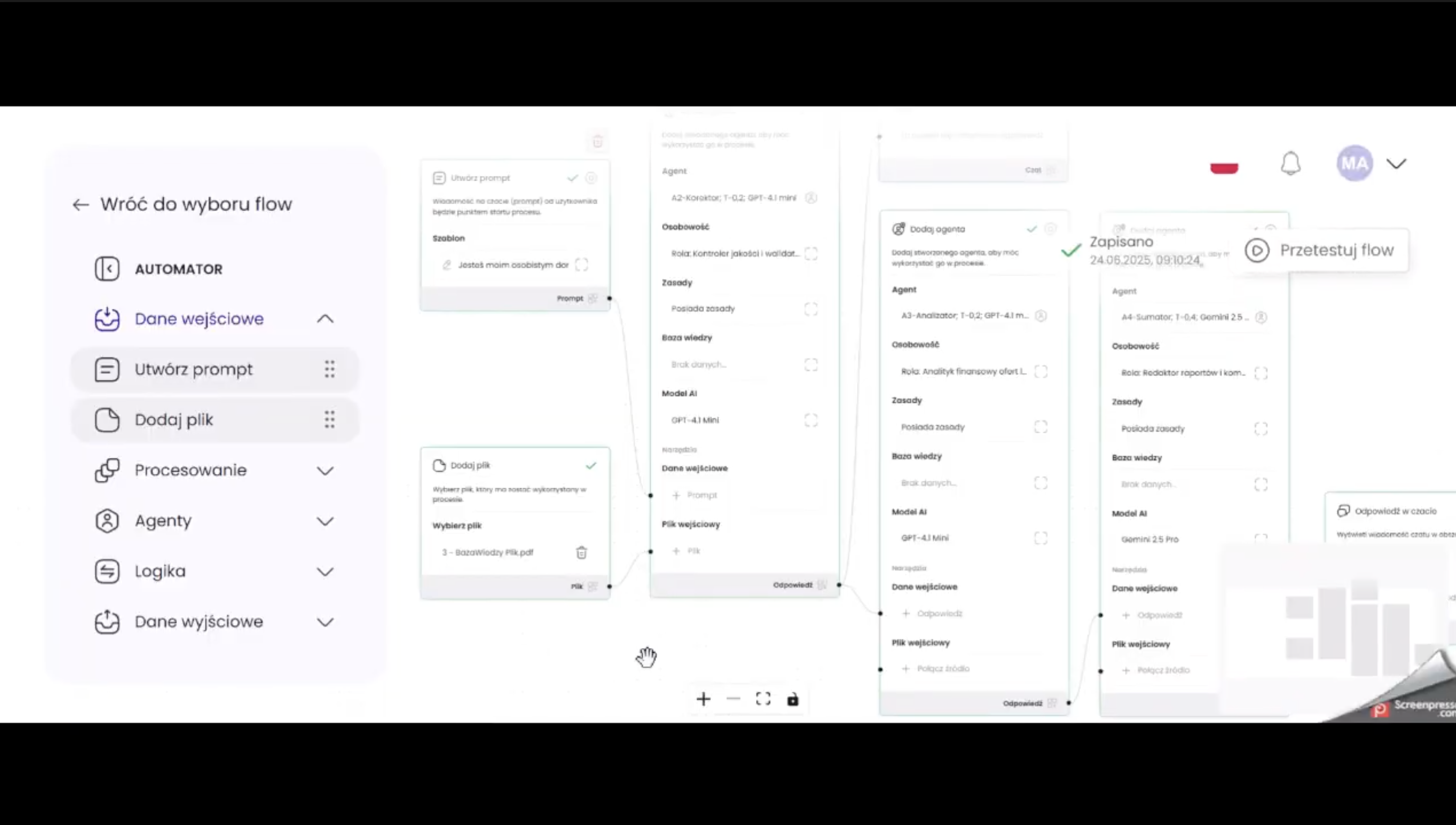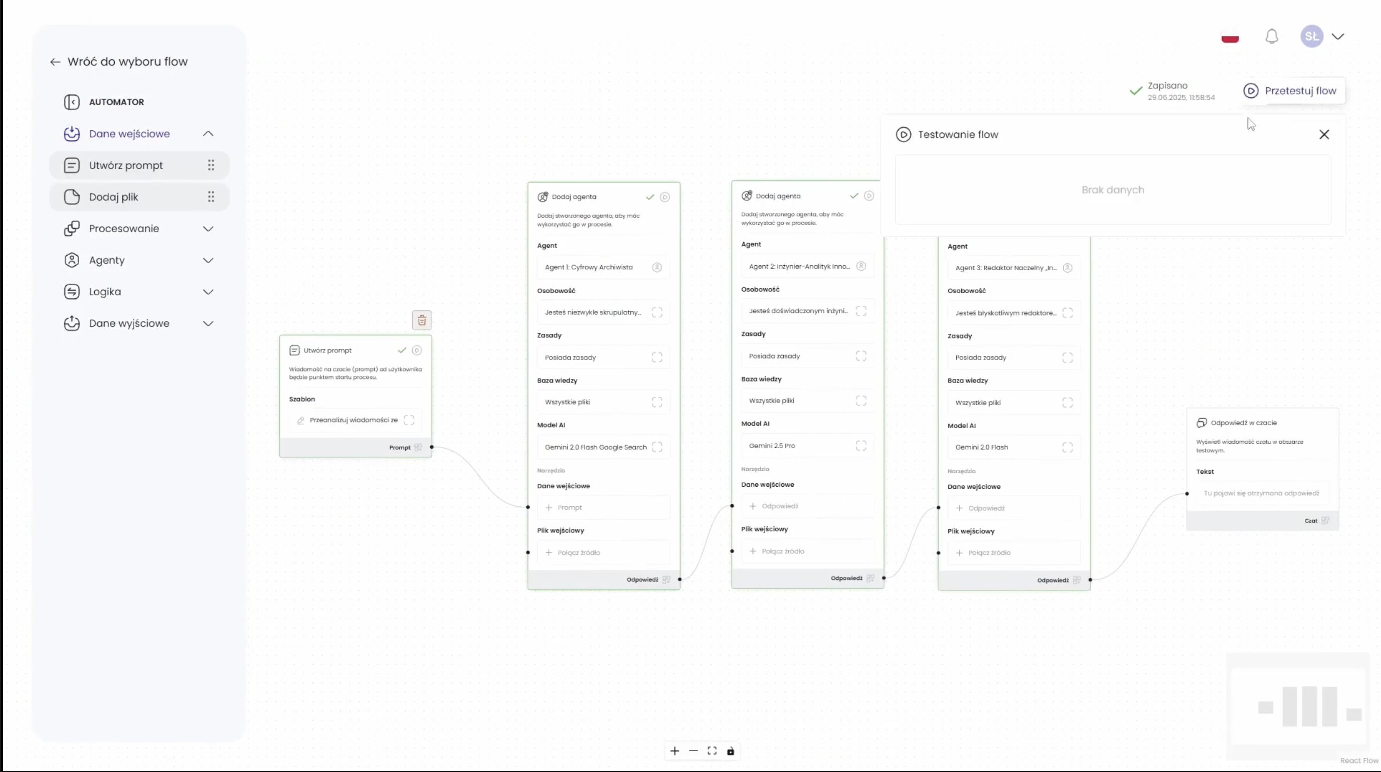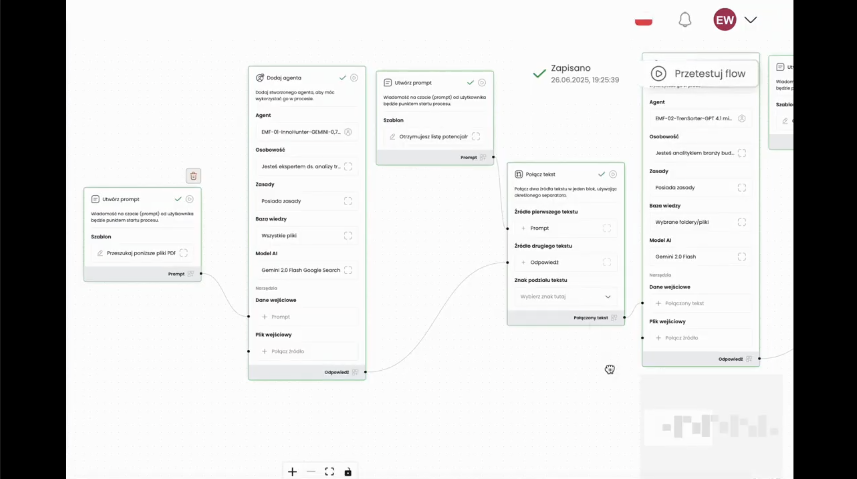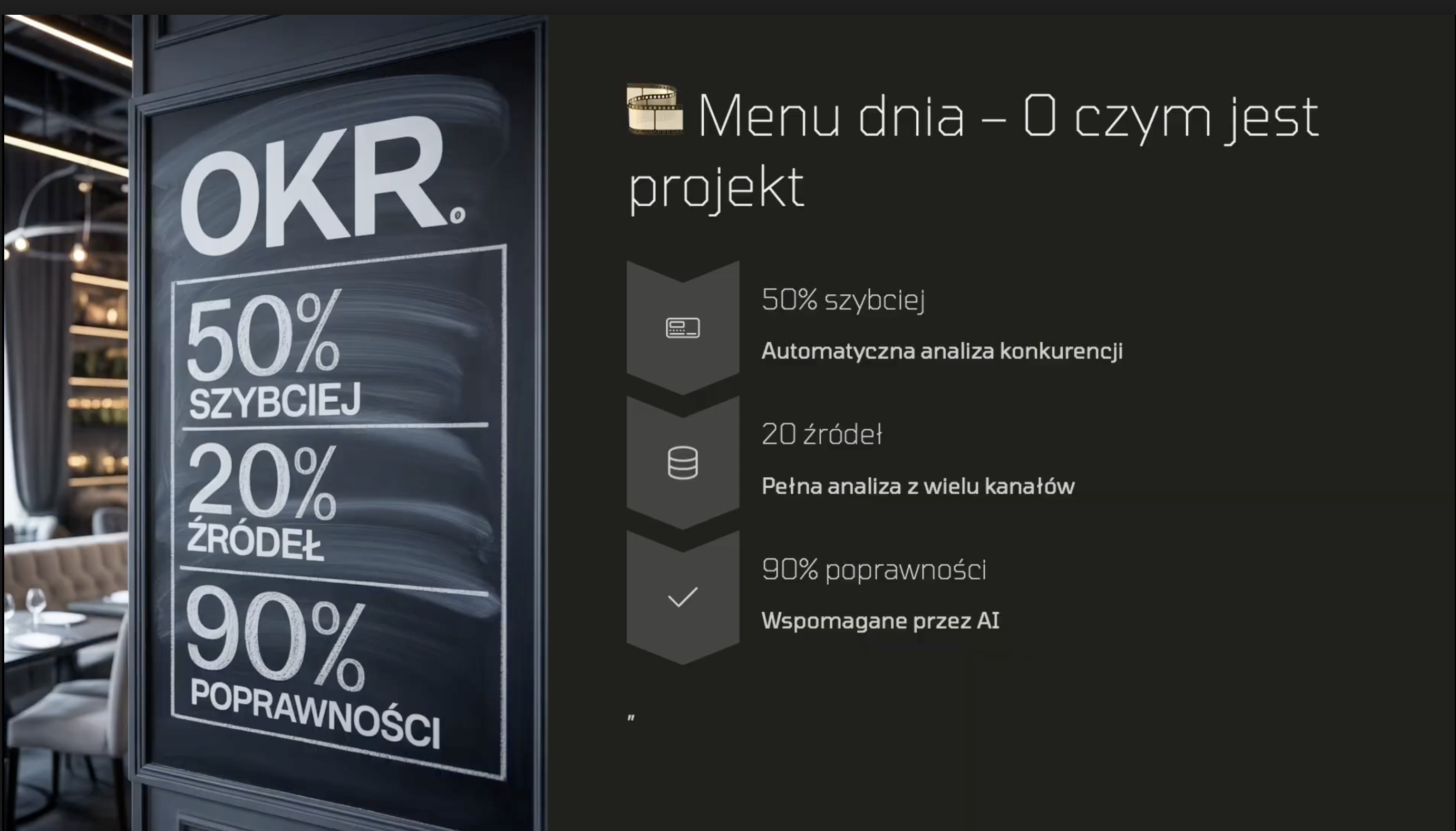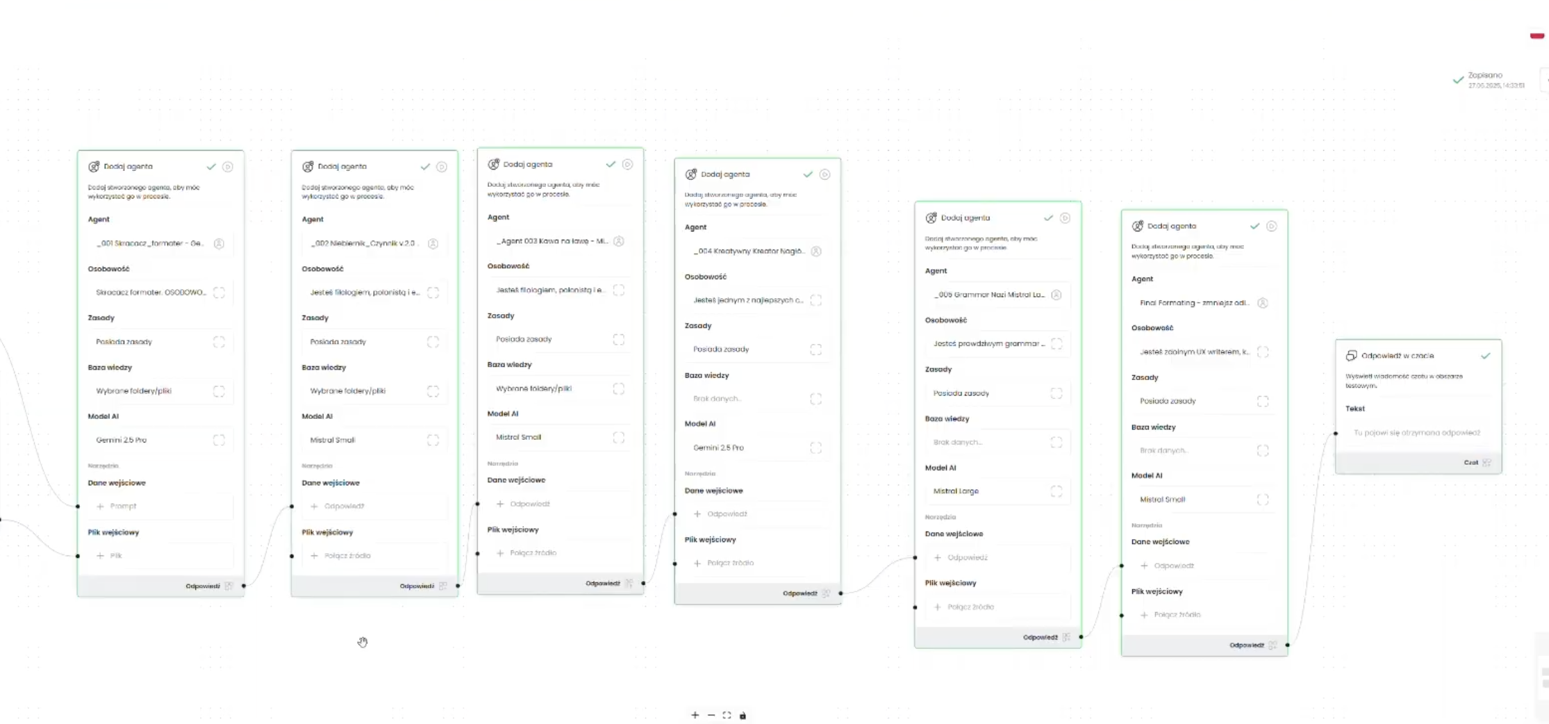 Każdy zespół to inna historia, inne wyzwania i inny pomysł na wykorzystanie AI w biznesie. Znajdziecie tutaj przygotowane rozwiązania zespołów projektowych pokazujące efekty ich pracy — od koncepcji, przez realizację, aż po finalne rezultaty.