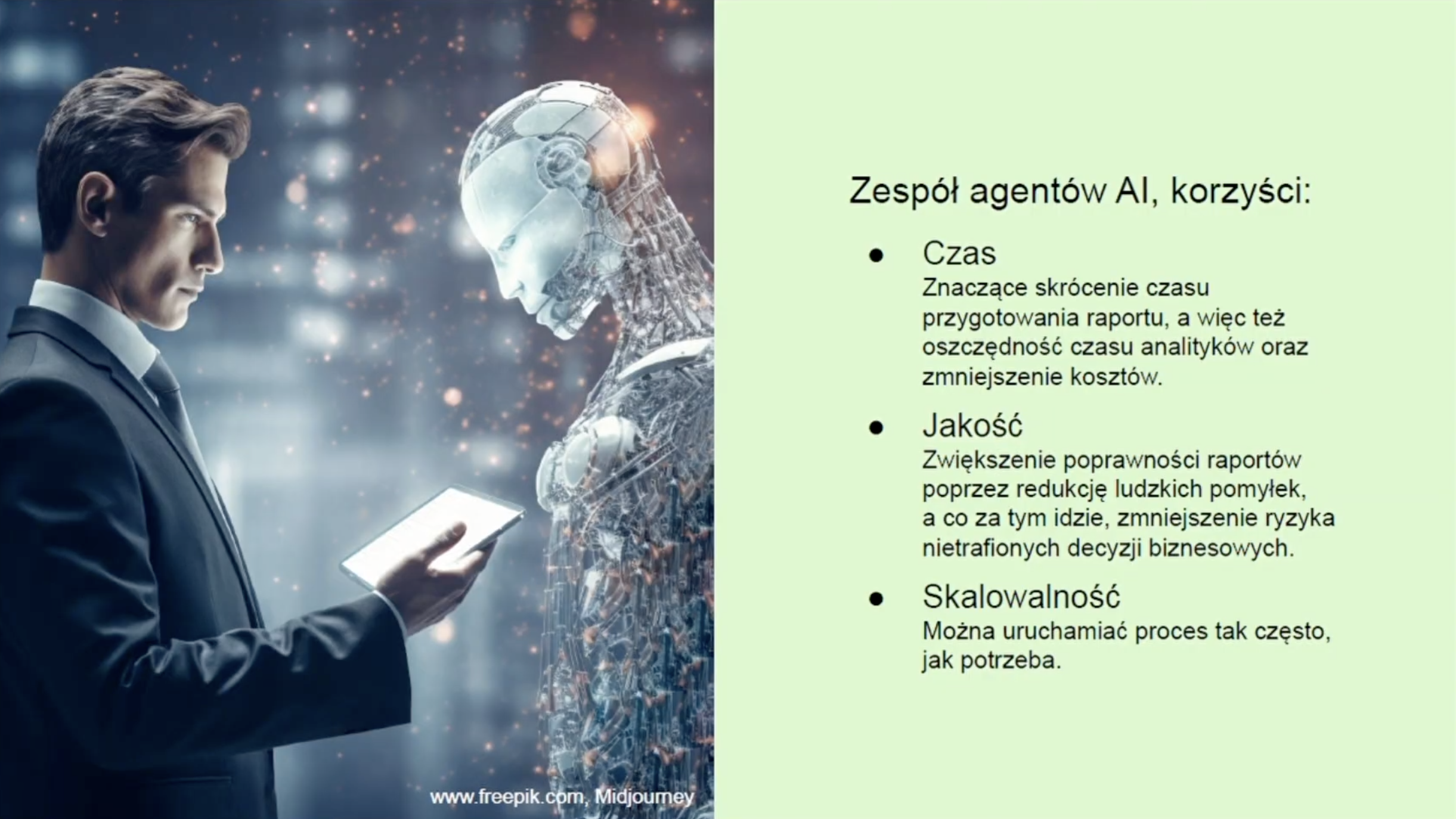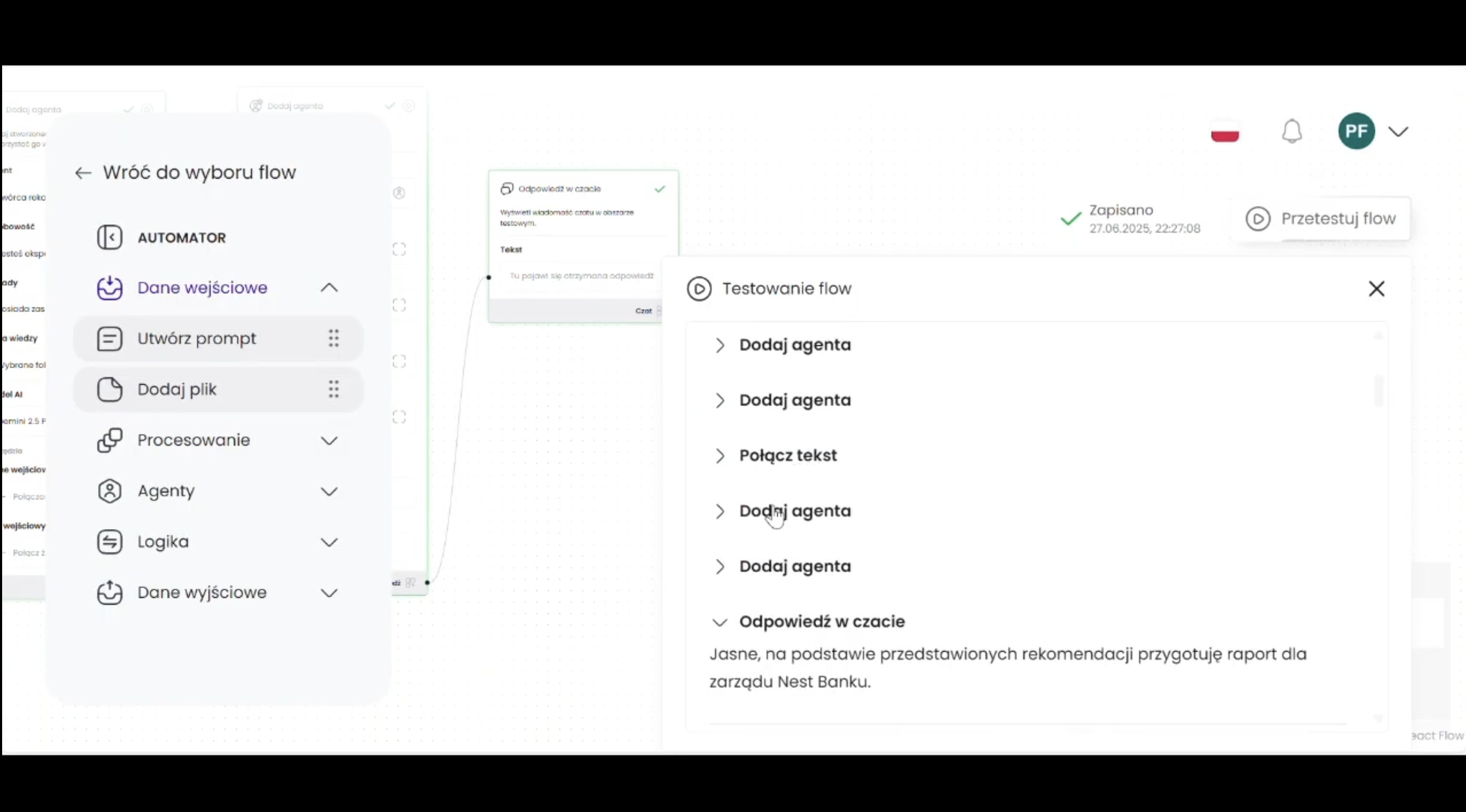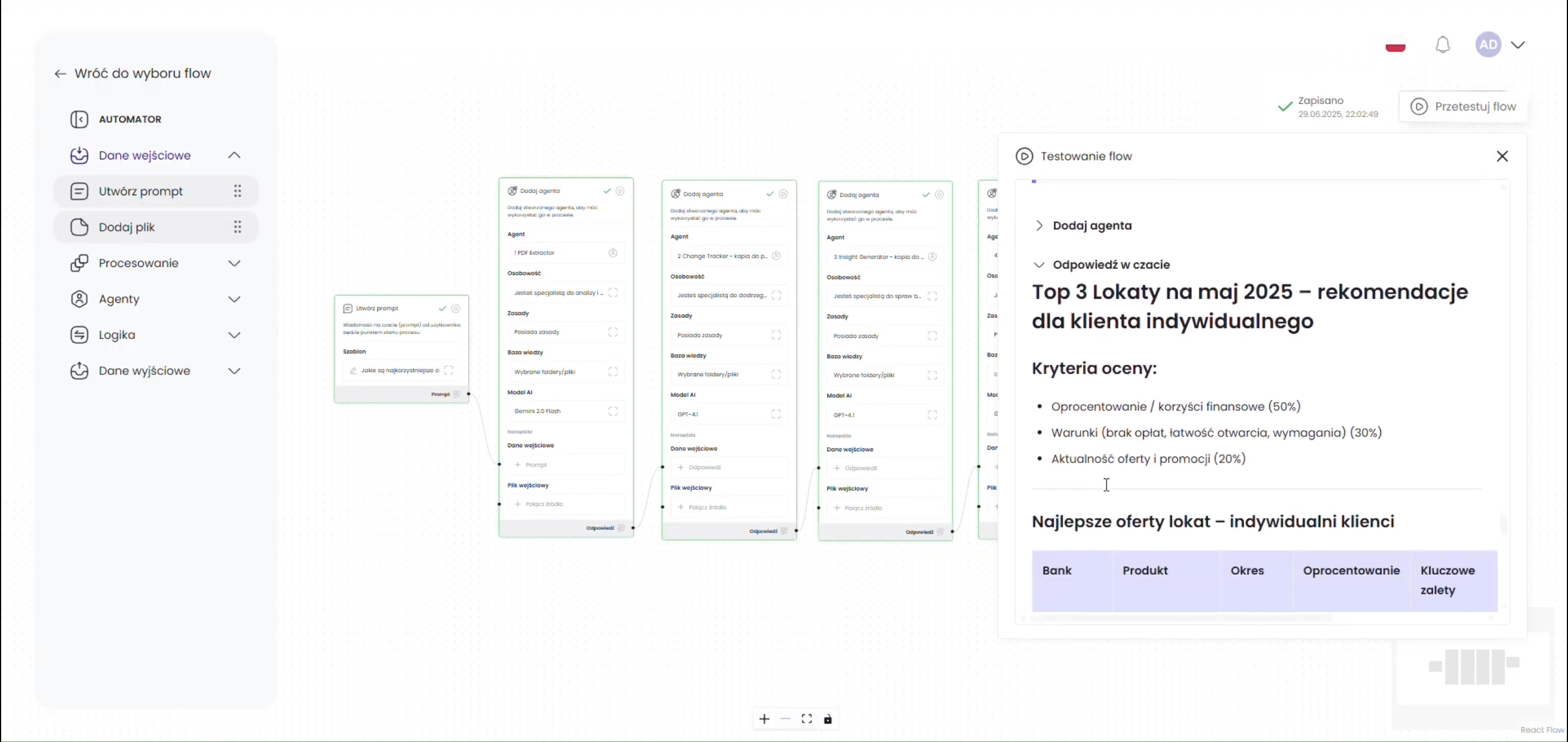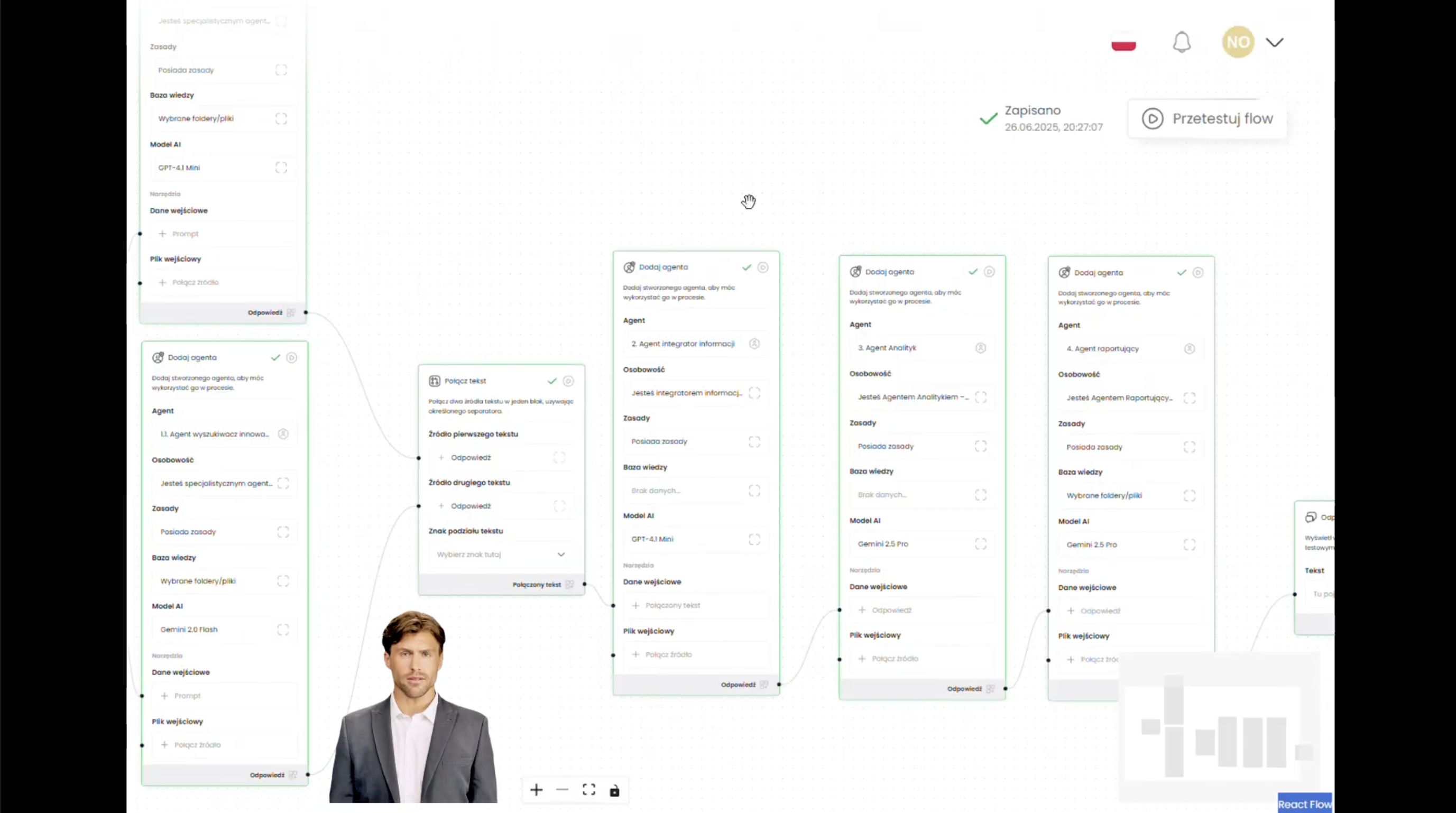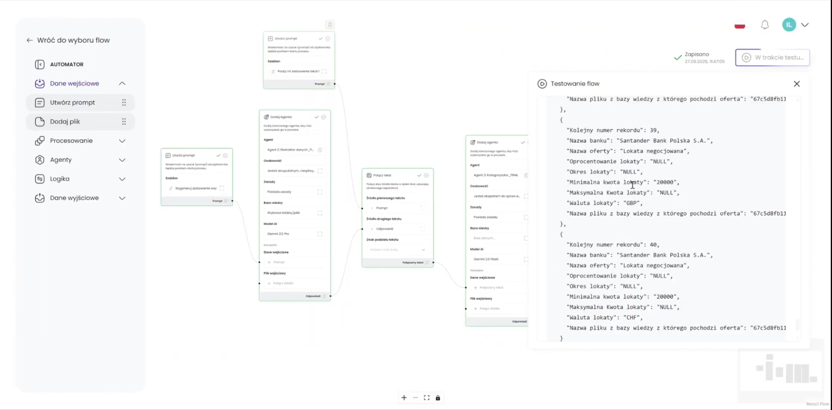 Każdy zespół to inna historia, inne wyzwania i inny pomysł na wykorzystanie AI w biznesie. Znajdziecie tutaj przygotowane rozwiązania zespołów projektowych pokazujące efekty ich pracy — od koncepcji, przez realizację, aż po finalne rezultaty.
