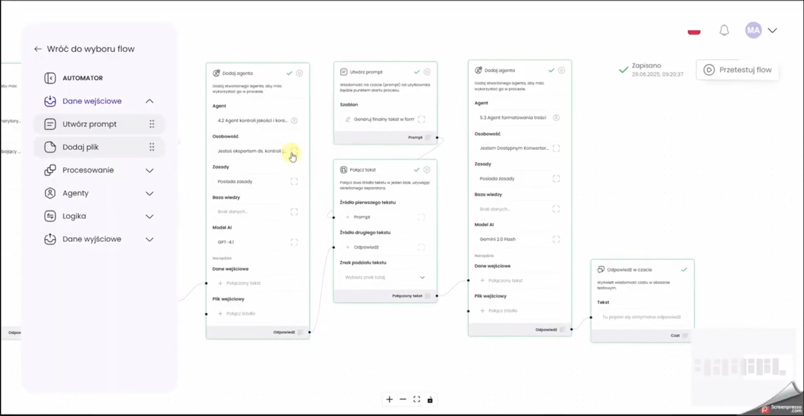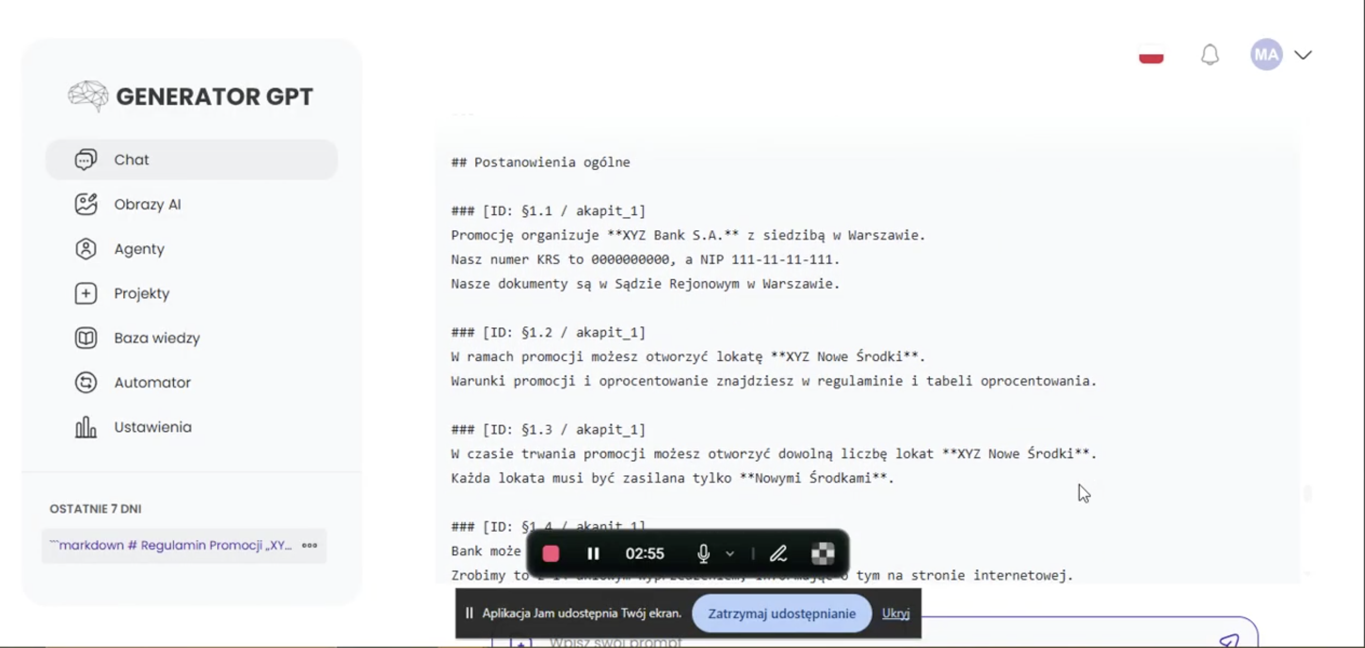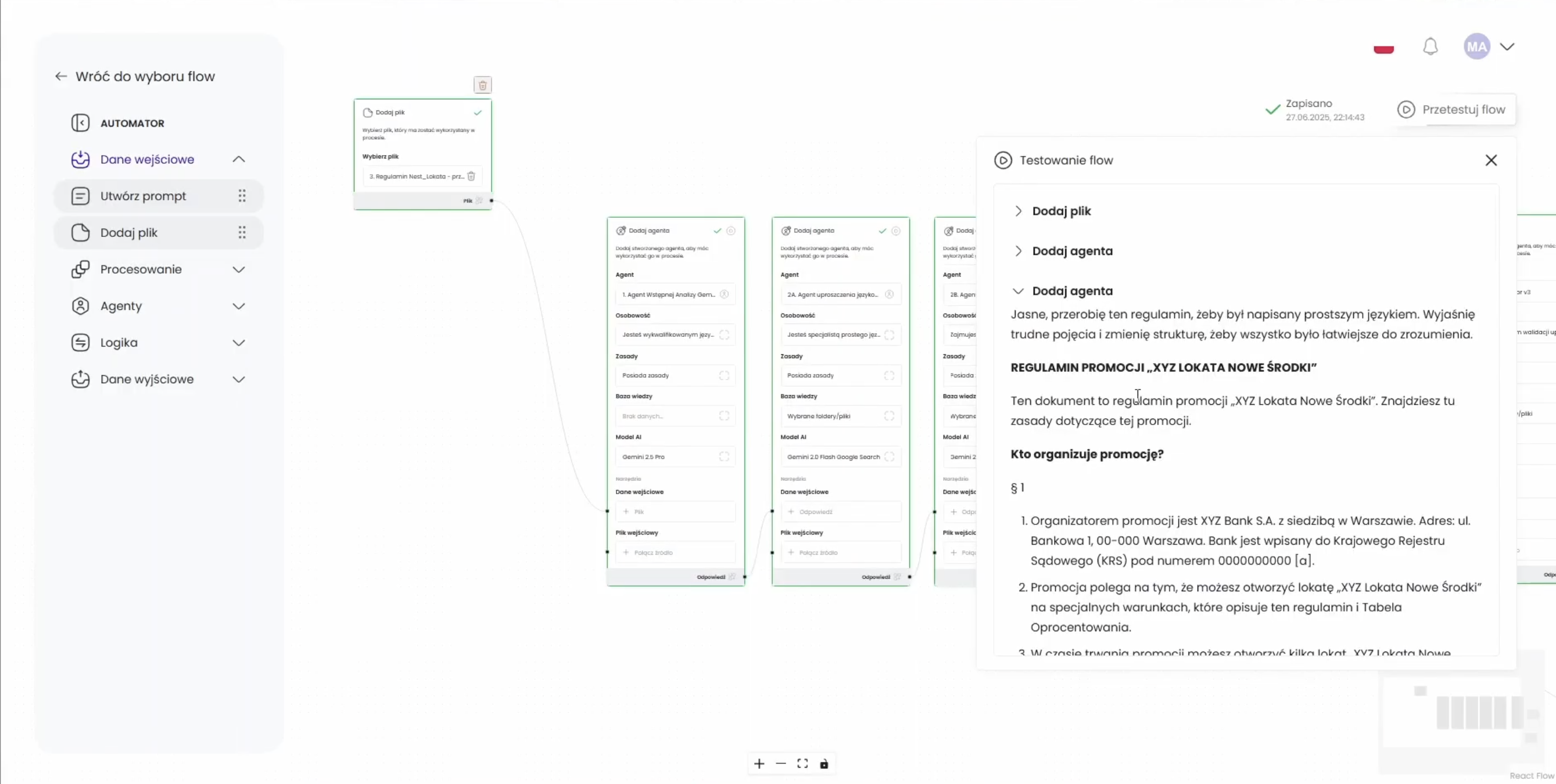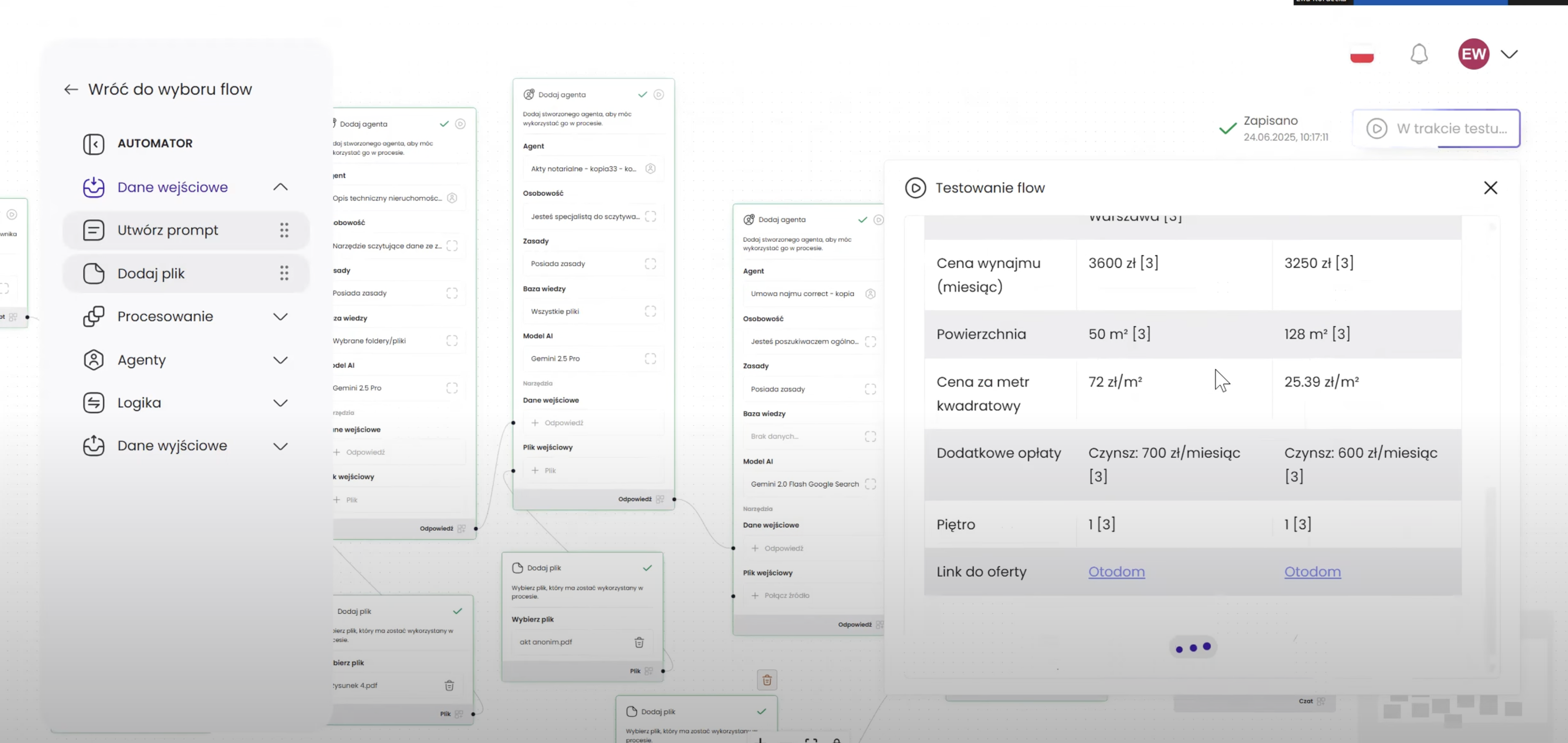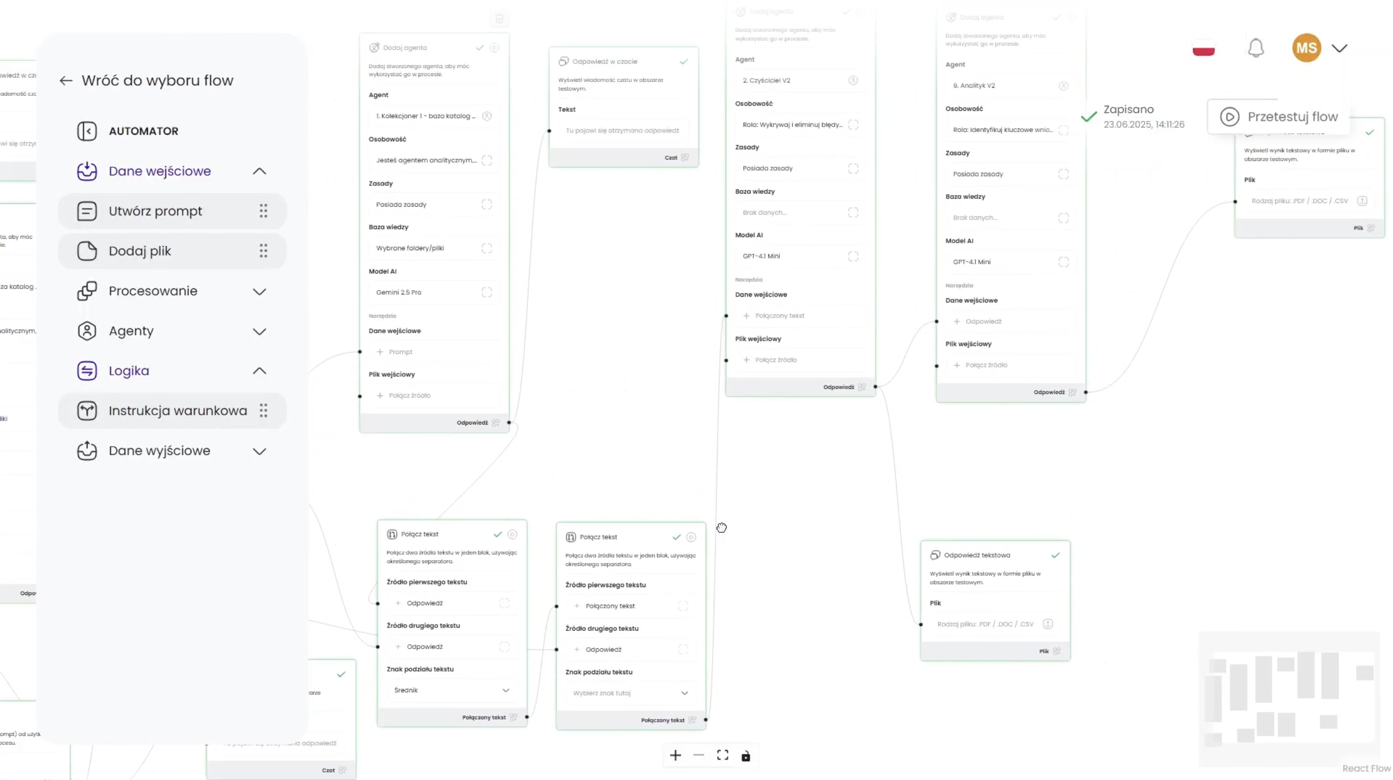 Każdy zespół to inna historia, inne wyzwania i inny pomysł na wykorzystanie AI w biznesie. Znajdziecie tutaj przygotowane rozwiązania zespołów projektowych pokazujące efekty ich pracy — od koncepcji, przez realizację, aż po finalne rezultaty.