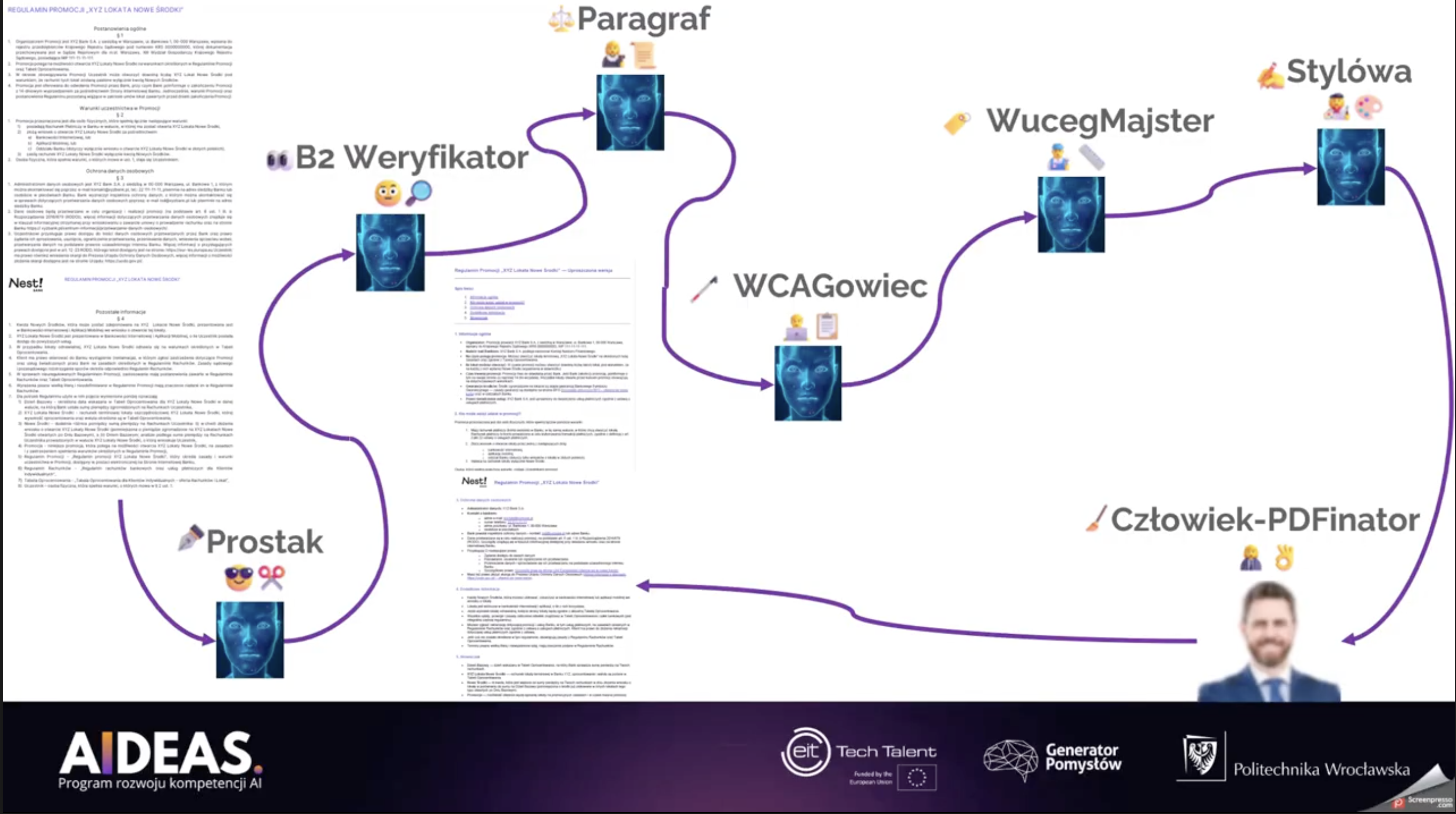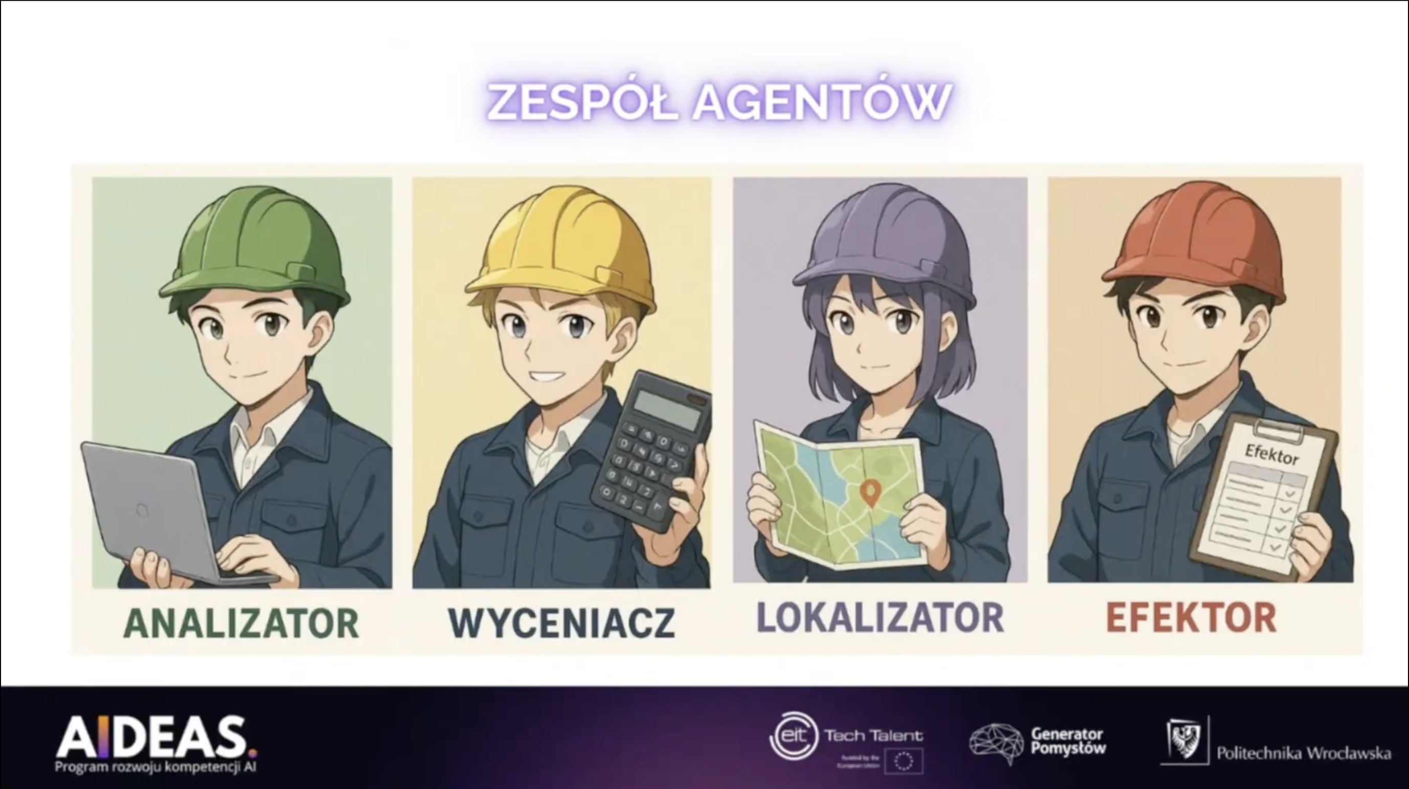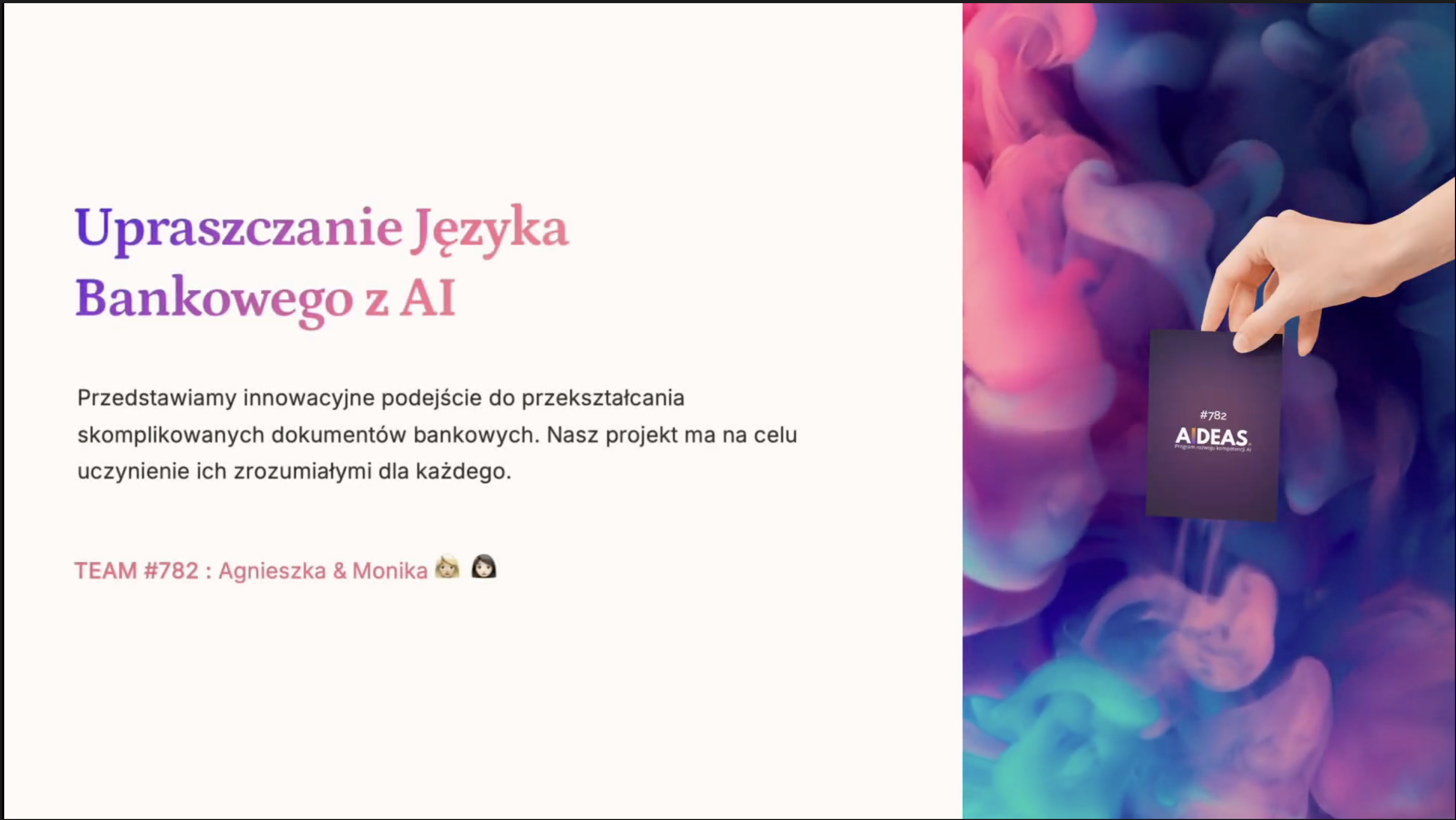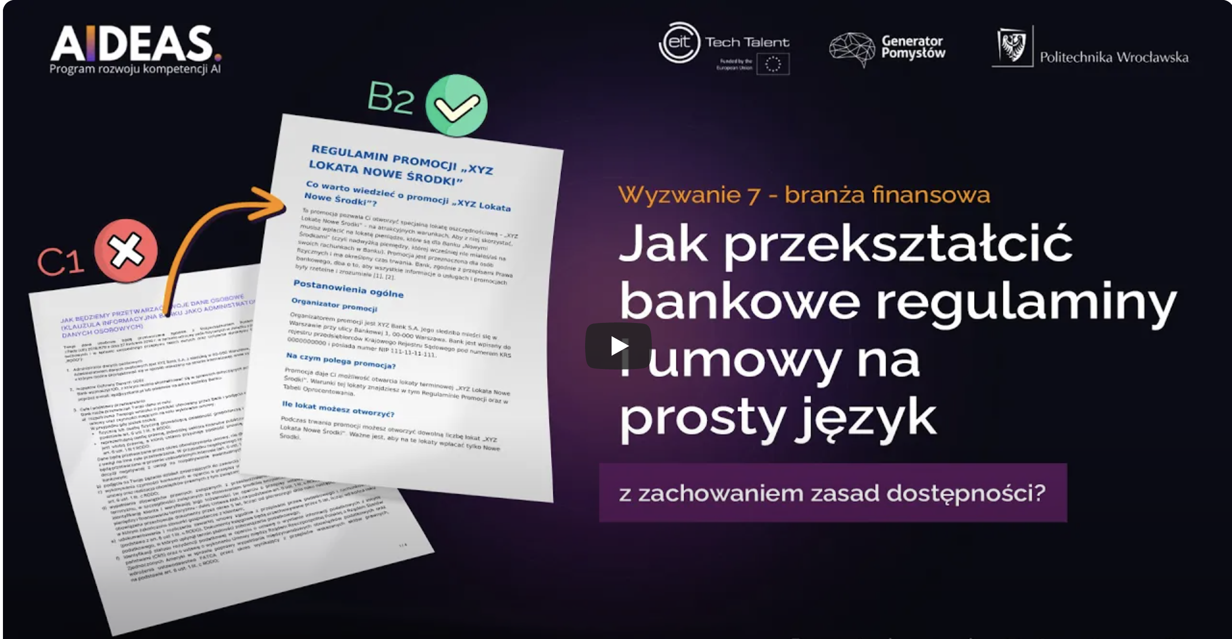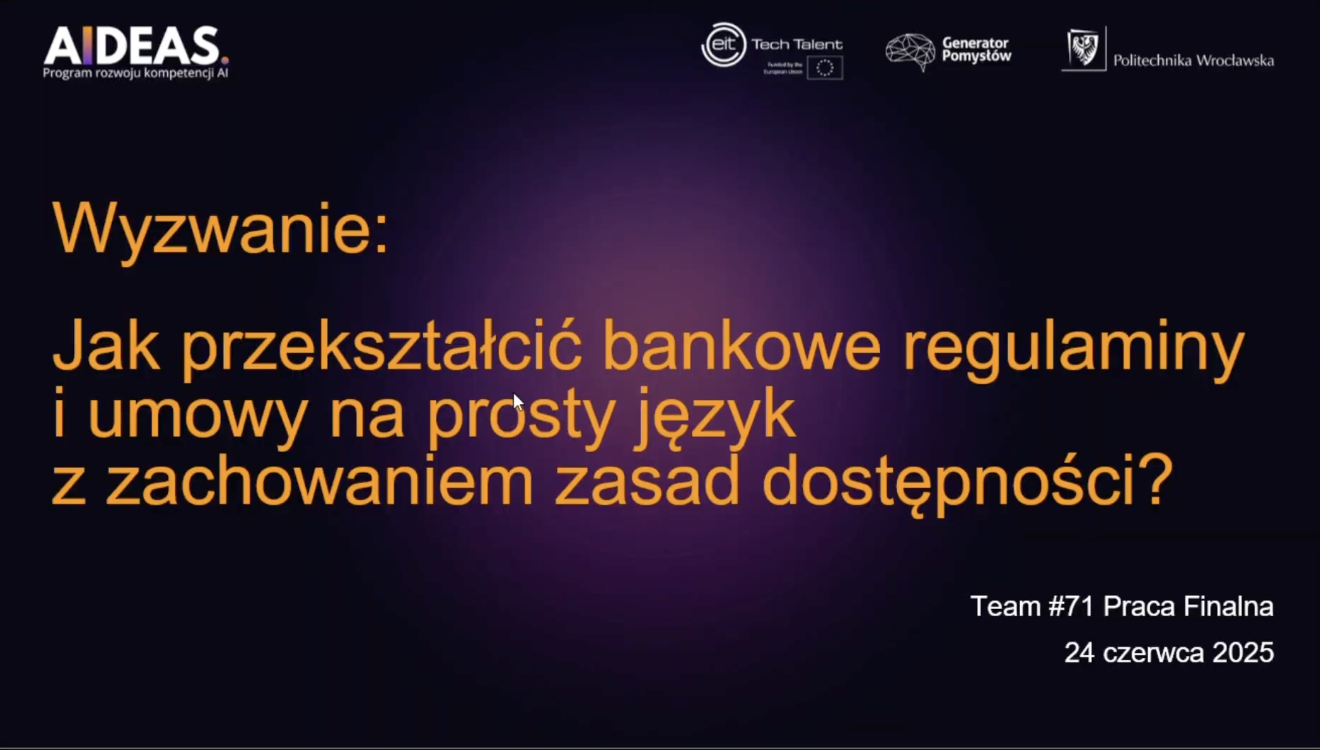 Zakładka "Wasze projekty" to miejsce, w którym prezentujemy wyjątkowe realizacje zespołów projektowych AIDEAS z drugiej kohorty programu. To właśnie tutaj możecie zobaczyć, jak uczestnicy przekładają swoją wiedzę i umiejętności w zakresie sztucznej inteligencji na praktyczne działania i innowacyjne rozwiązania.