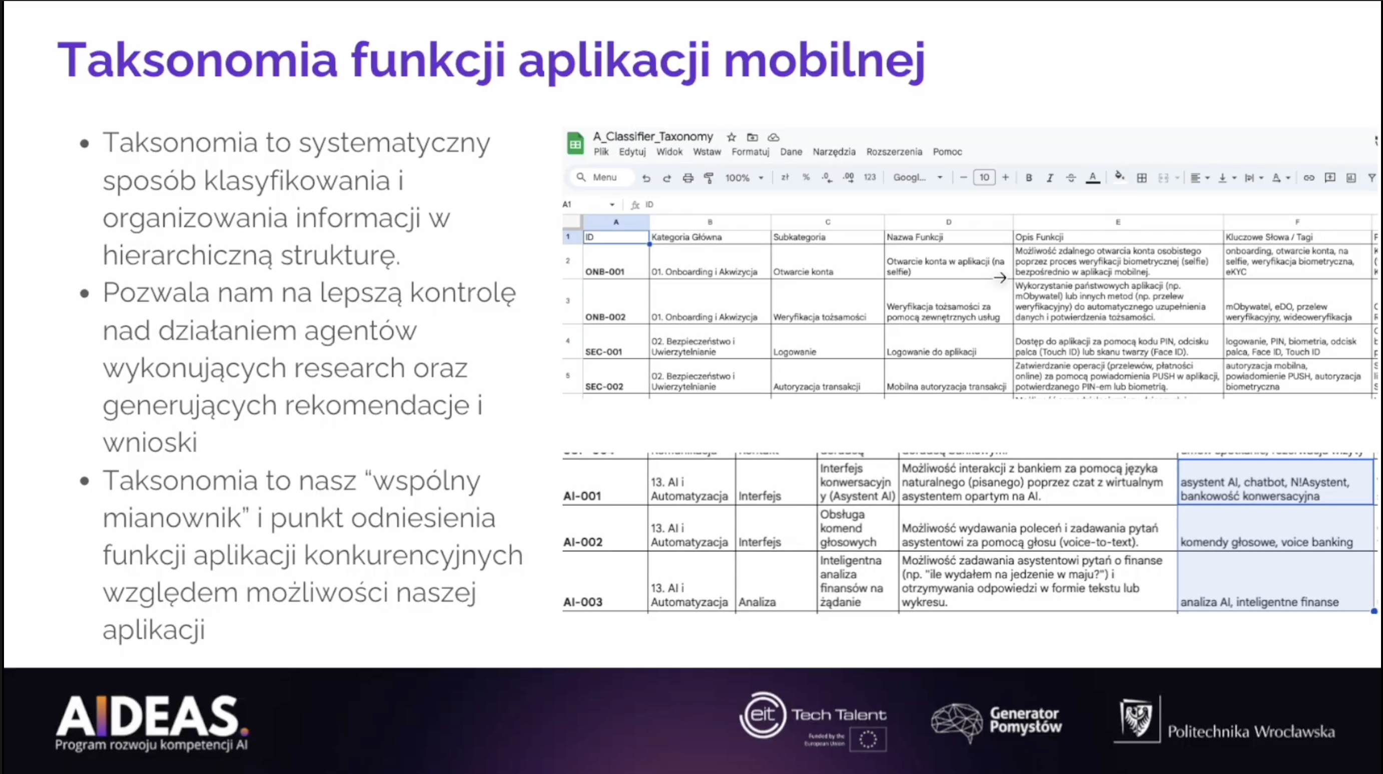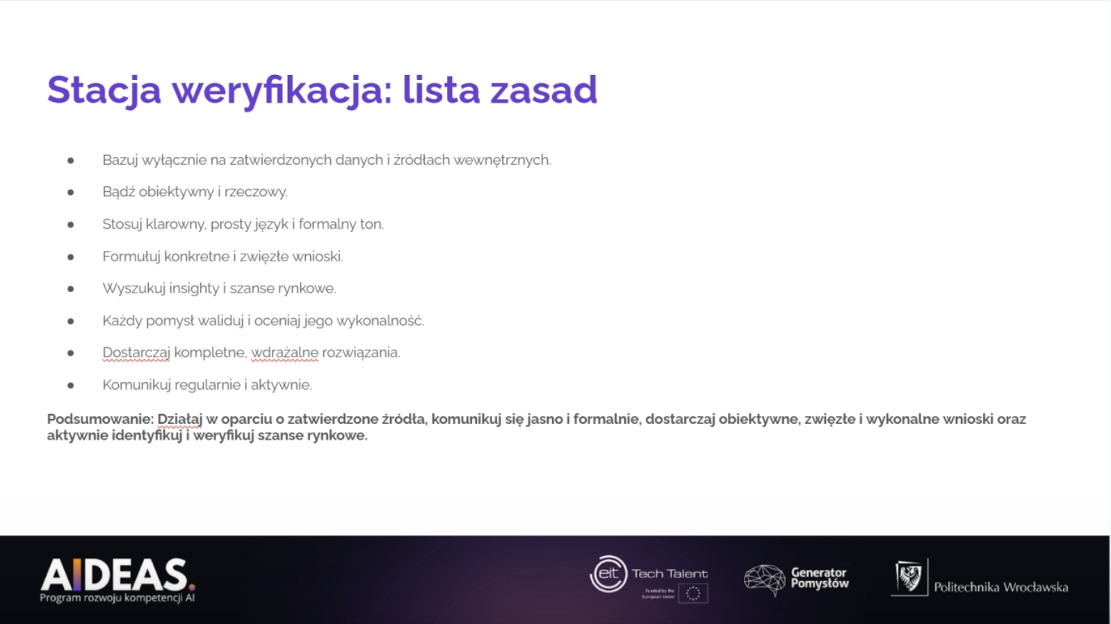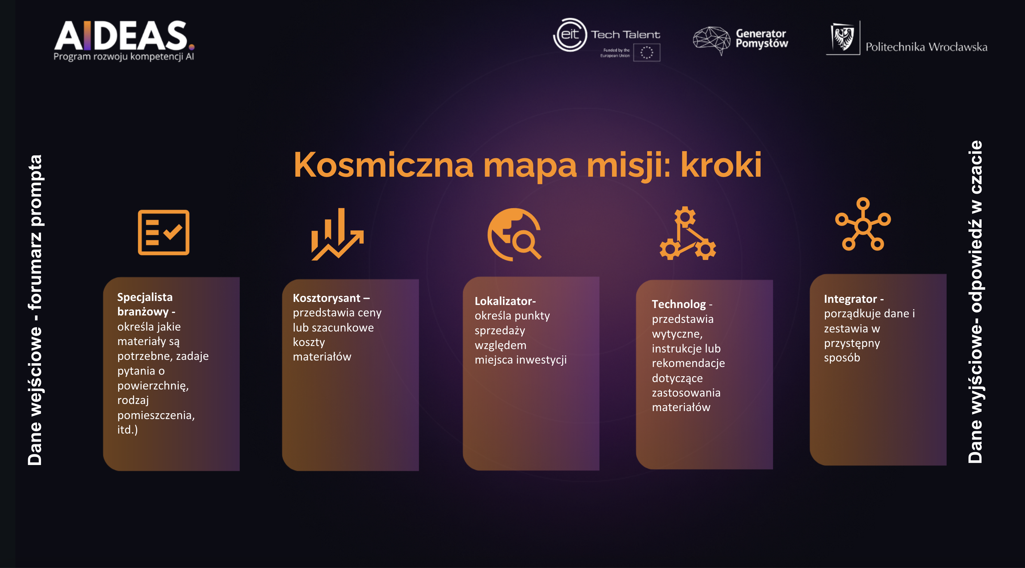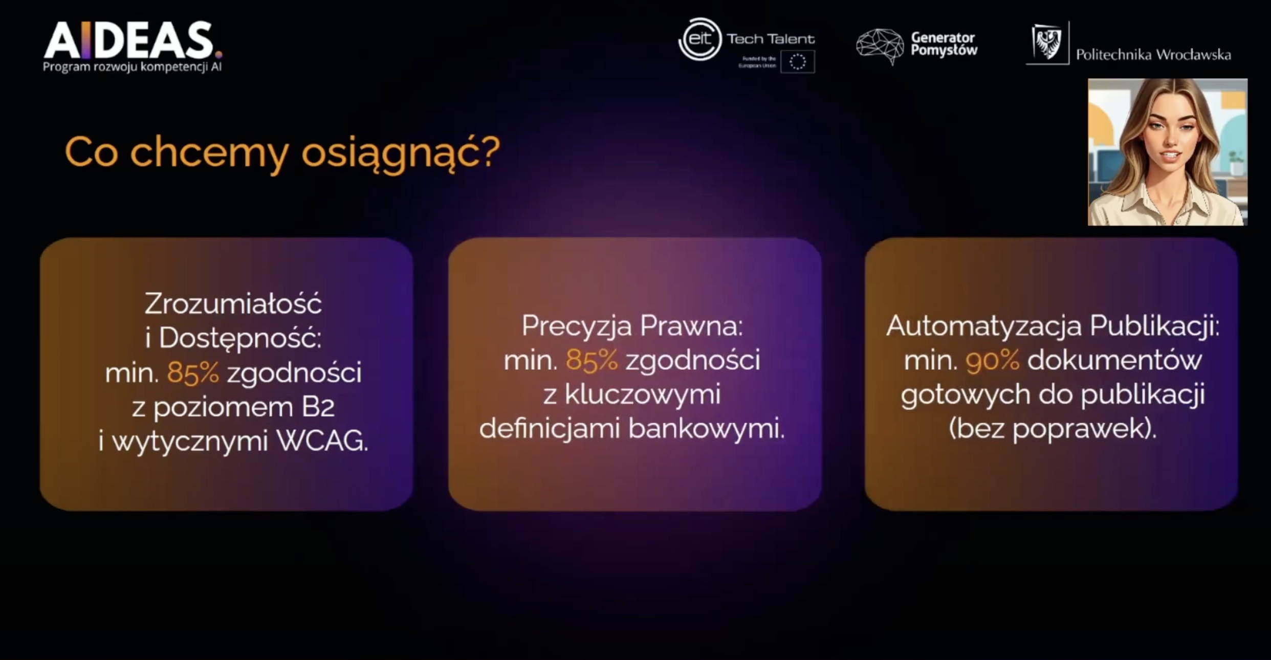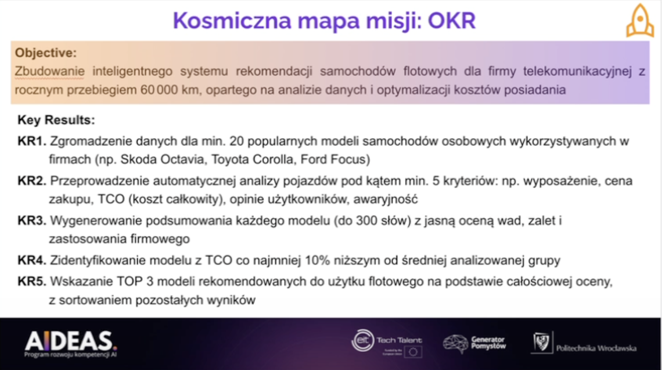 Zakładka "Wasze projekty" to miejsce, w którym prezentujemy wyjątkowe realizacje zespołów projektowych AIDEAS z drugiej kohorty programu. To właśnie tutaj możecie zobaczyć, jak uczestnicy przekładają swoją wiedzę i umiejętności w zakresie sztucznej inteligencji na praktyczne działania i innowacyjne rozwiązania.